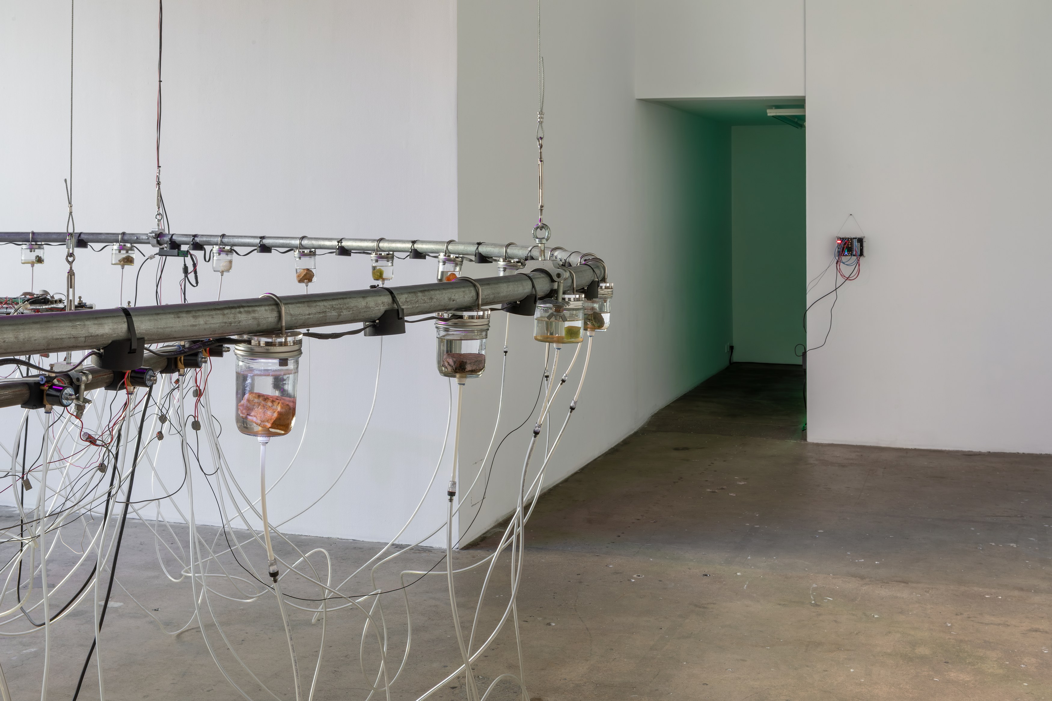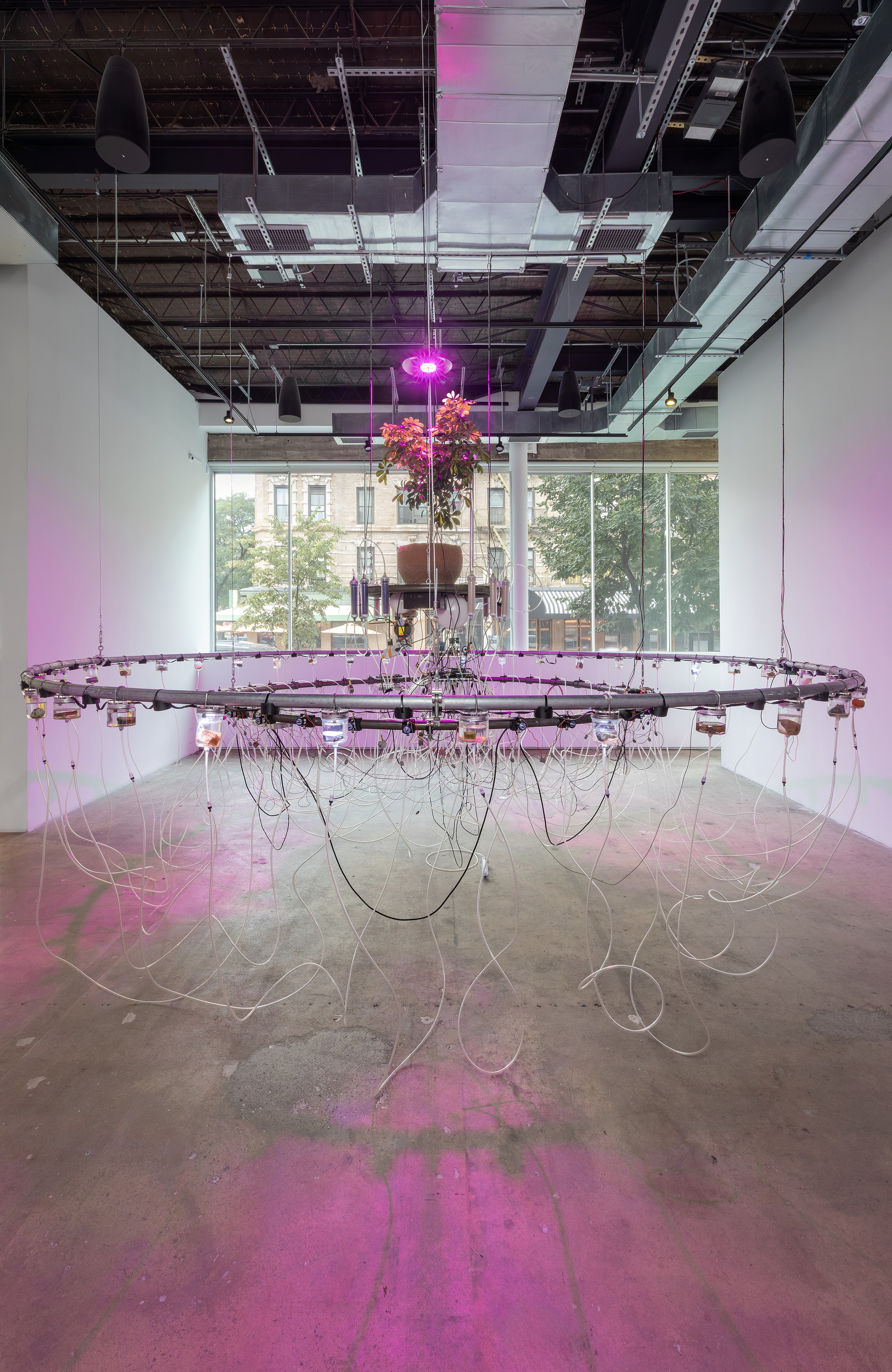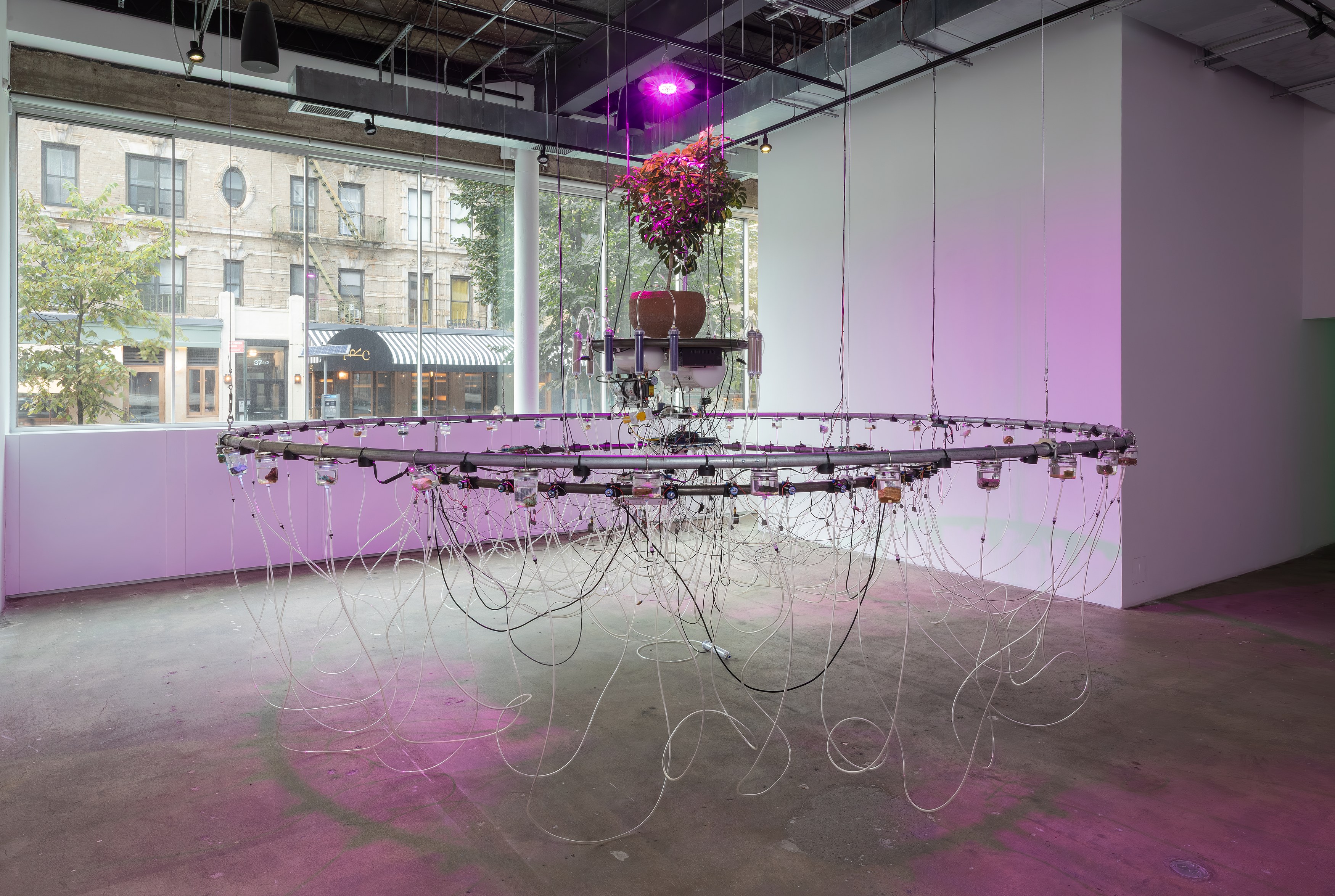 Swiss Institute (SI) is pleased to present the first institutional exhibition of Indonesian artist Bagus Pandega. Pandega’s work ingeniously addresses the extraction of natural resources in Indonesia—from the 16th century spice trade in nutmeg and cloves, to the palm oil industry, to the contemporary global demand for nickel used in batteries for computers, phones, and electric vehicles. Adopting a do-it-yourself, hacker approach, Pandega constructs modular systems using readily available, everyday technologies, natural materials such as plants and rare earth minerals, and musical instruments. These responsive installations are programmed to trigger mechanical and chemical reactions that generate sound or movement, influenced by changes in hyperlocal conditions such as human presence in the space.