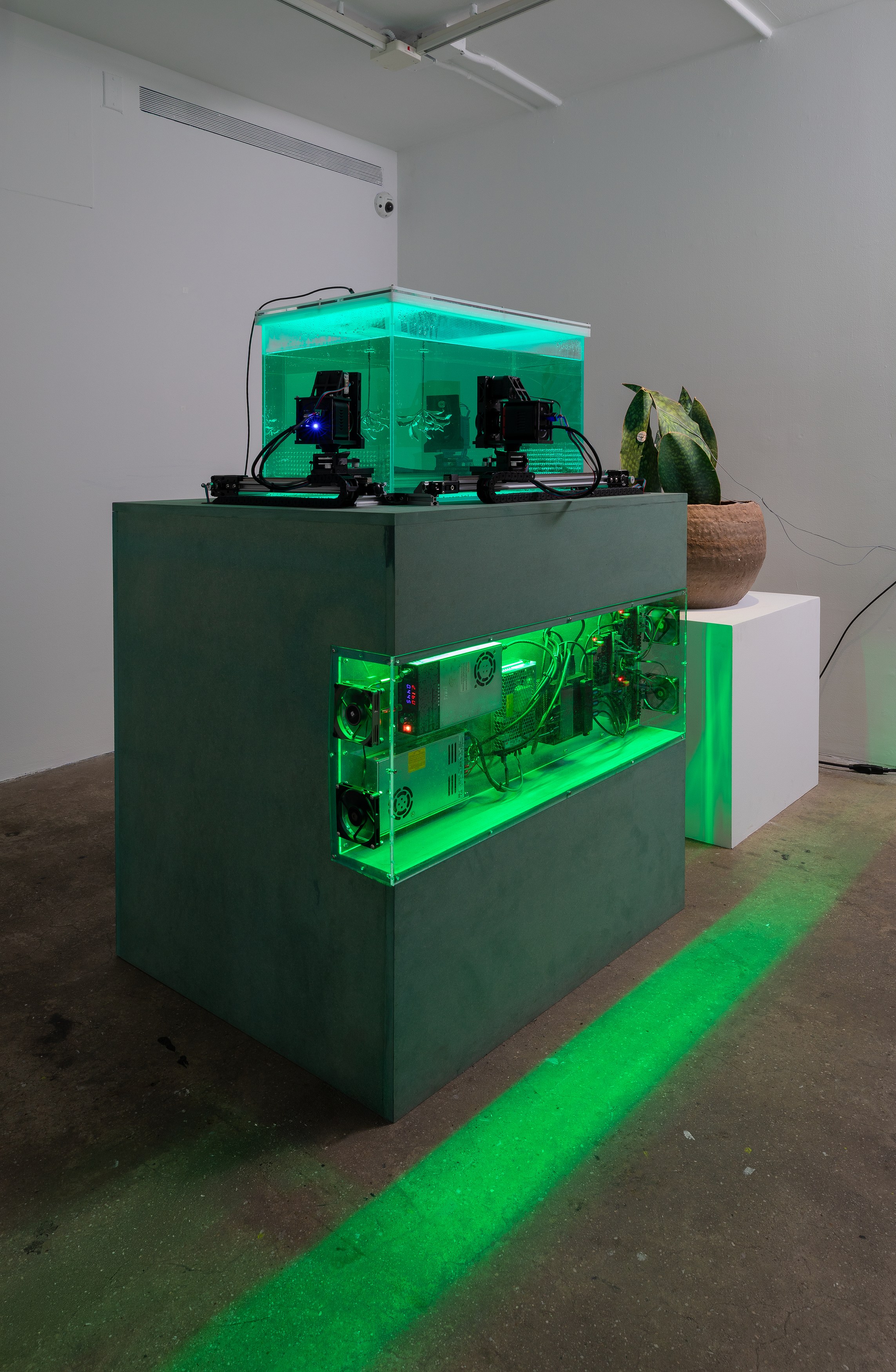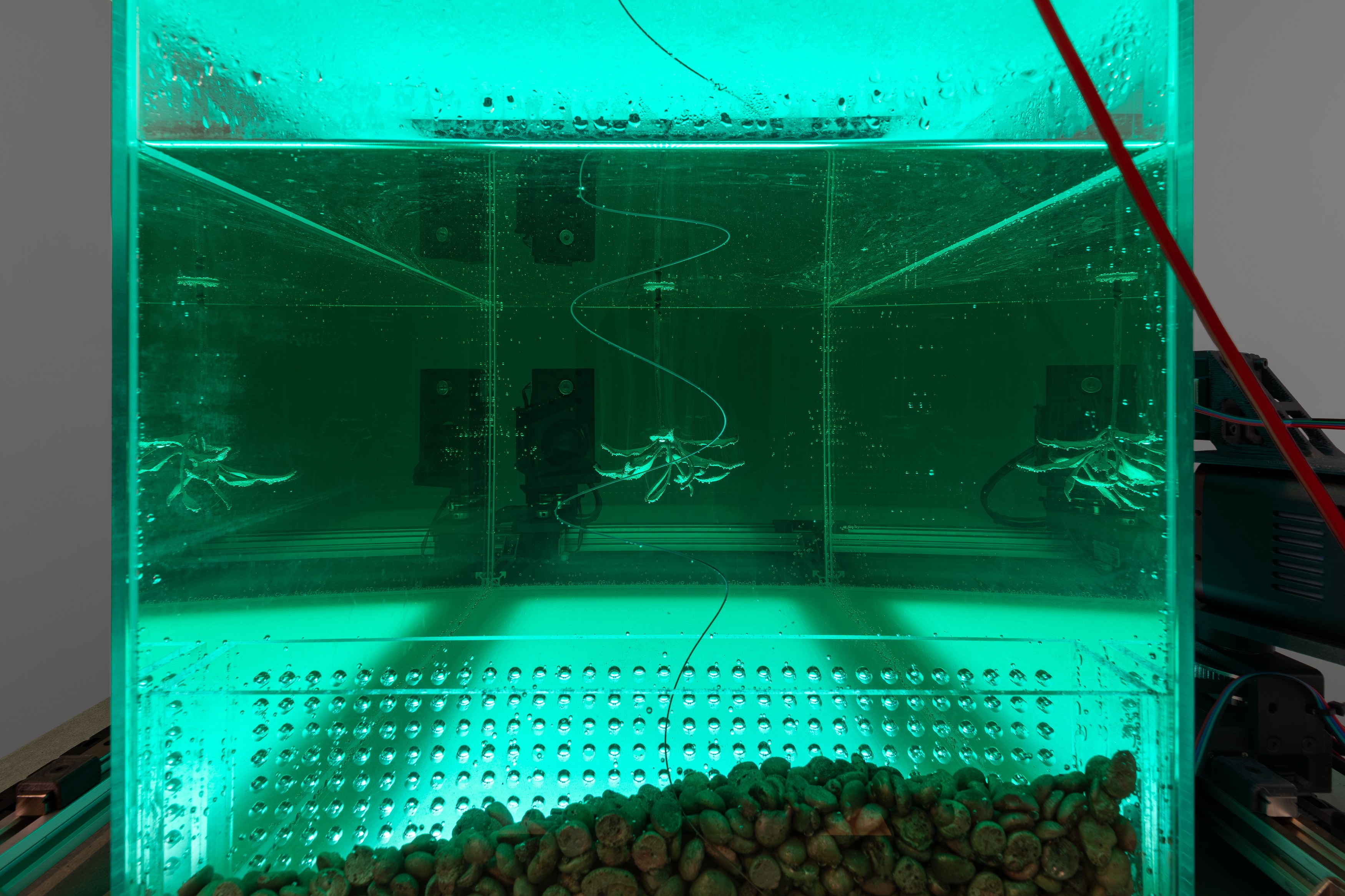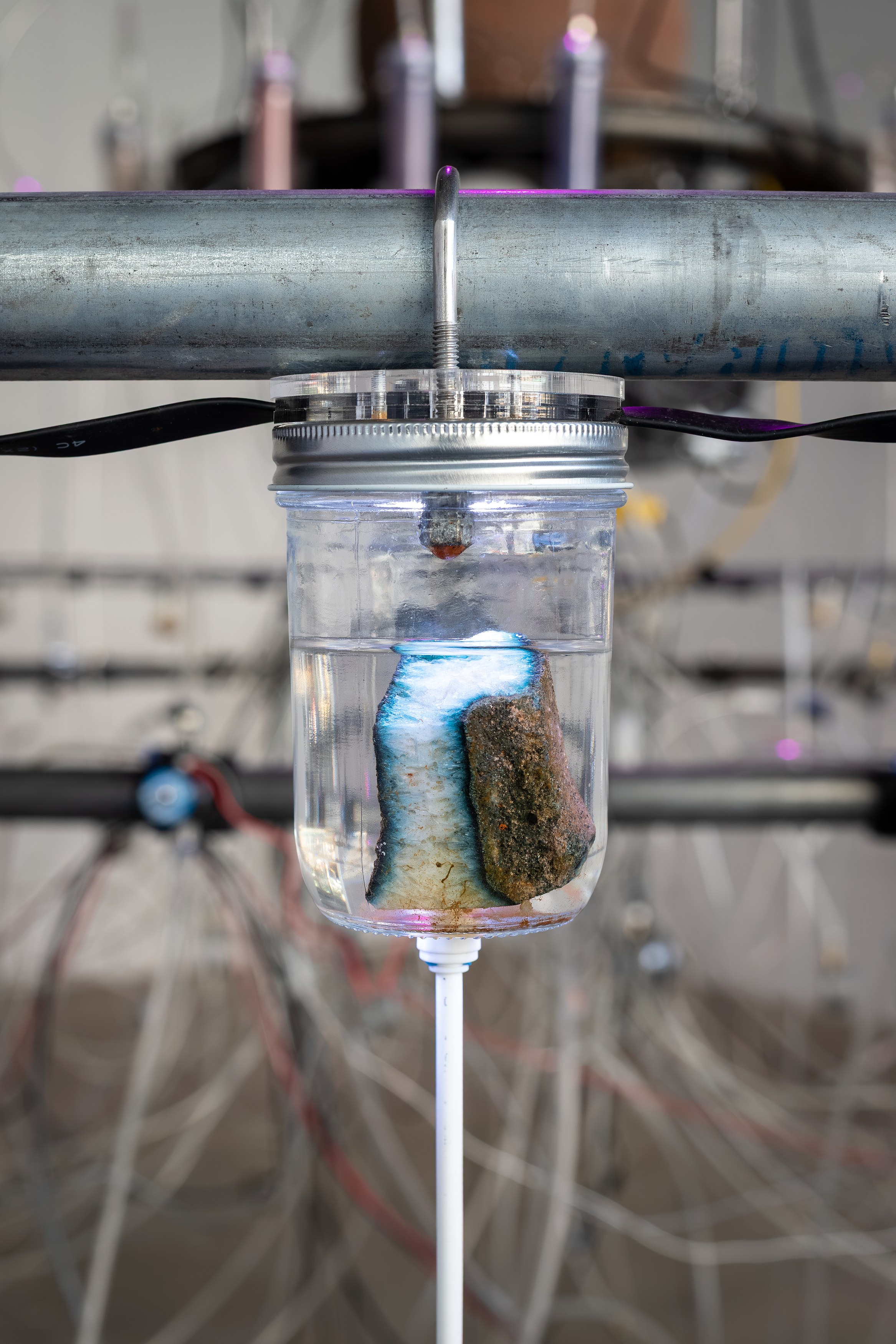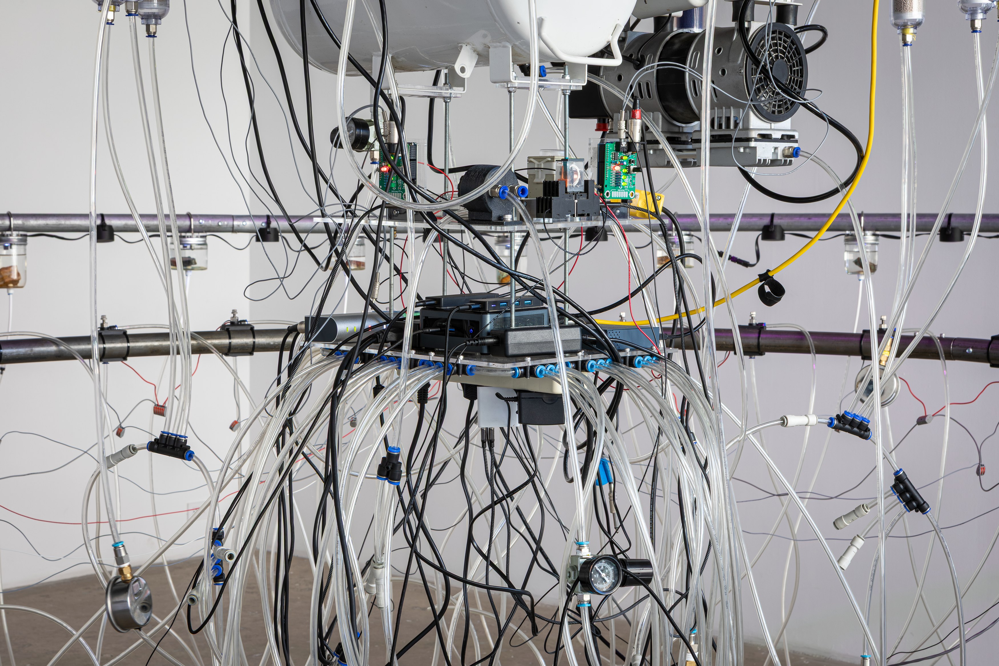 Swiss Institute (SI) is pleased to present the first institutional exhibition of Indonesian artist Bagus Pandega. Pandega’s work ingeniously addresses the extraction of natural resources in Indonesia—from the 16th century spice trade in nutmeg and cloves, to the palm oil industry, to the contemporary global demand for nickel used in batteries for computers, phones, and electric vehicles. Adopting a do-it-yourself, hacker approach, Pandega constructs modular systems using readily available, everyday technologies, natural materials such as plants and rare earth minerals, and musical instruments. These responsive installations are programmed to trigger mechanical and chemical reactions that generate sound or movement, influenced by changes in hyperlocal conditions such as human presence in the space.