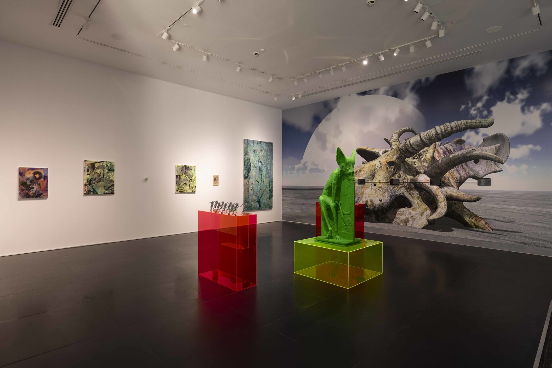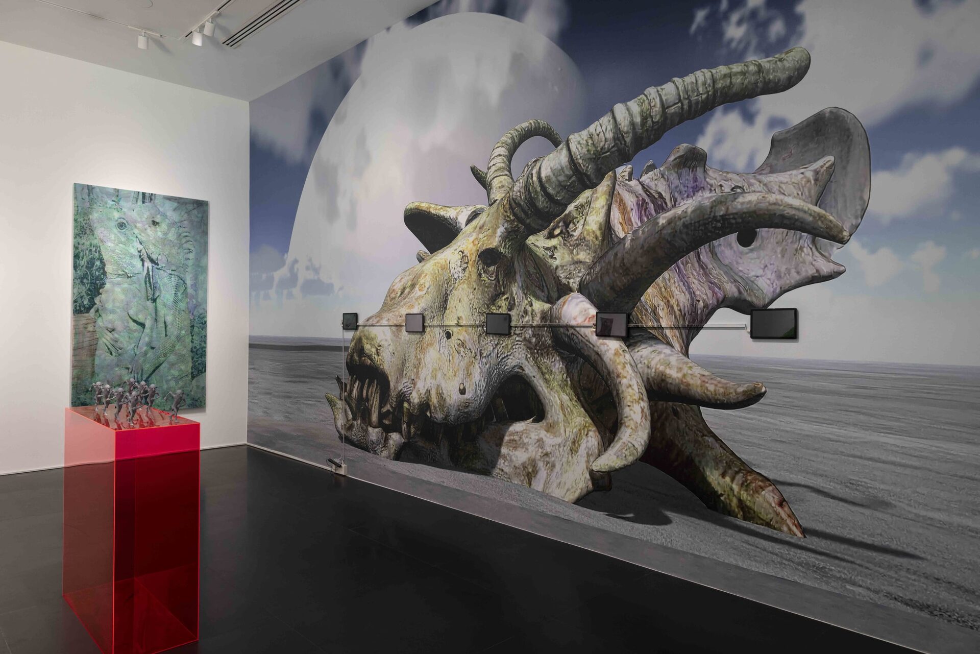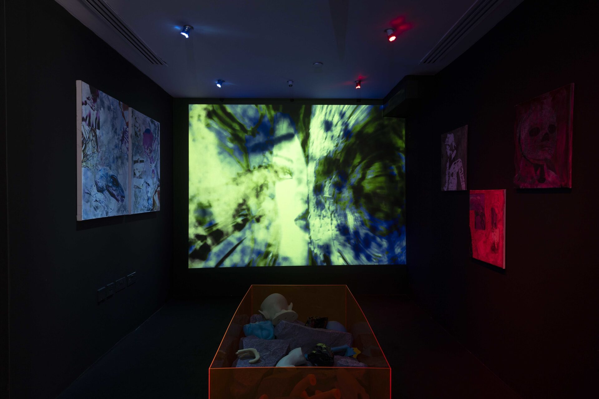 Talal Al Najjar’s Mesh & Mayhem, curated by Salem AlSuwaidi, unravels a terrain where digital architectures and localized memory entwine, forming a fabric stretched thin across speculative futures and fractured realities. The exhibition confronts the way simulation infiltrates geography and biology—where the mesh becomes both structure and rupture, at once a connective tissue and a site of collapse.