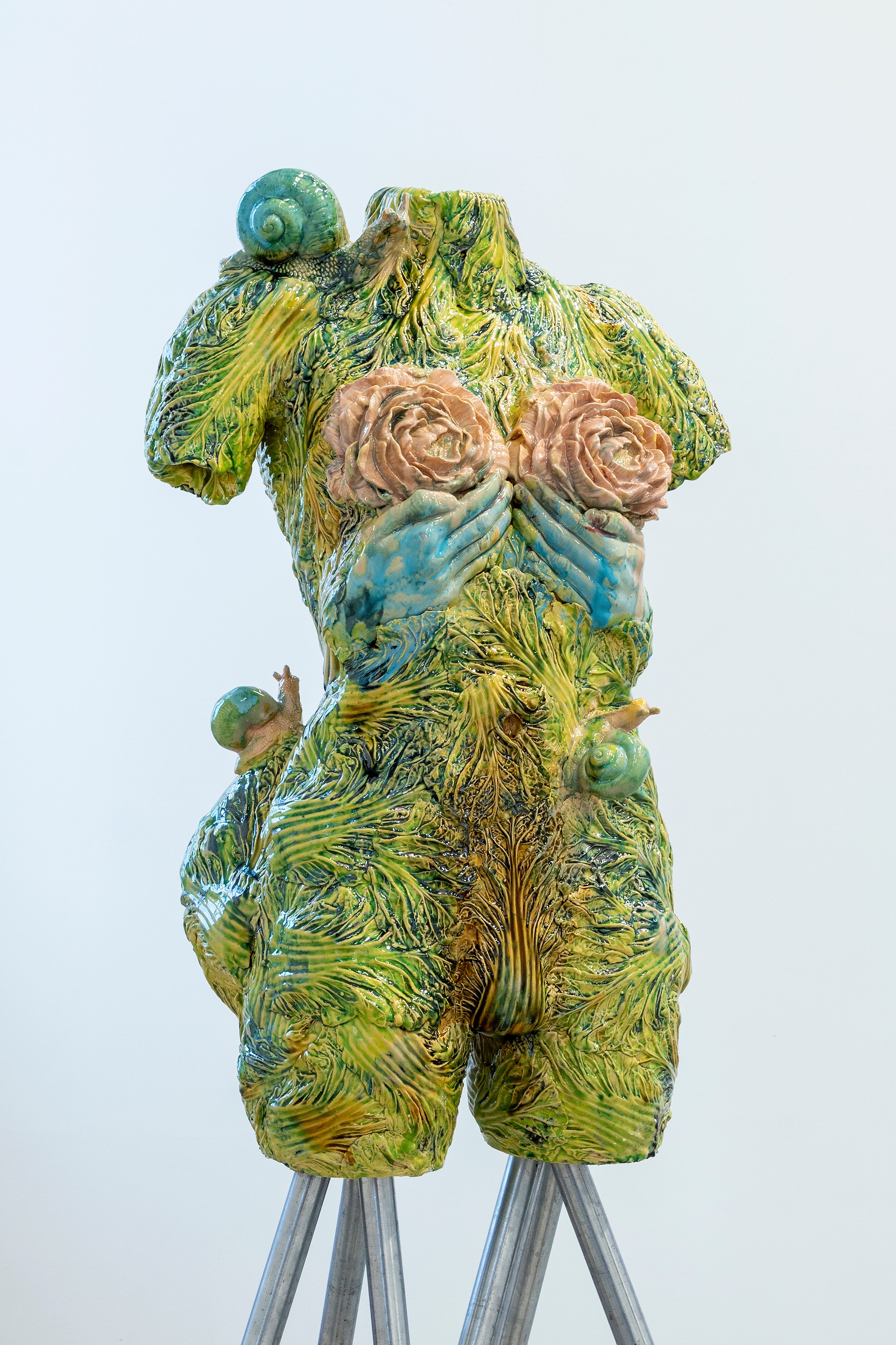 At last, I am a Zen conceptualist. An exhibition titled NIRVANA. Only ceramic sculptures. These four torsos are bodily poetry – haikus about the body, expanding into nature, sinking into the soil, and being reborn. Look at the works as you would at clouds in the sky: take your time, and you will see which characters and which stories appear. Nirvana is arrival itself, and the celebration of the cycle of life.