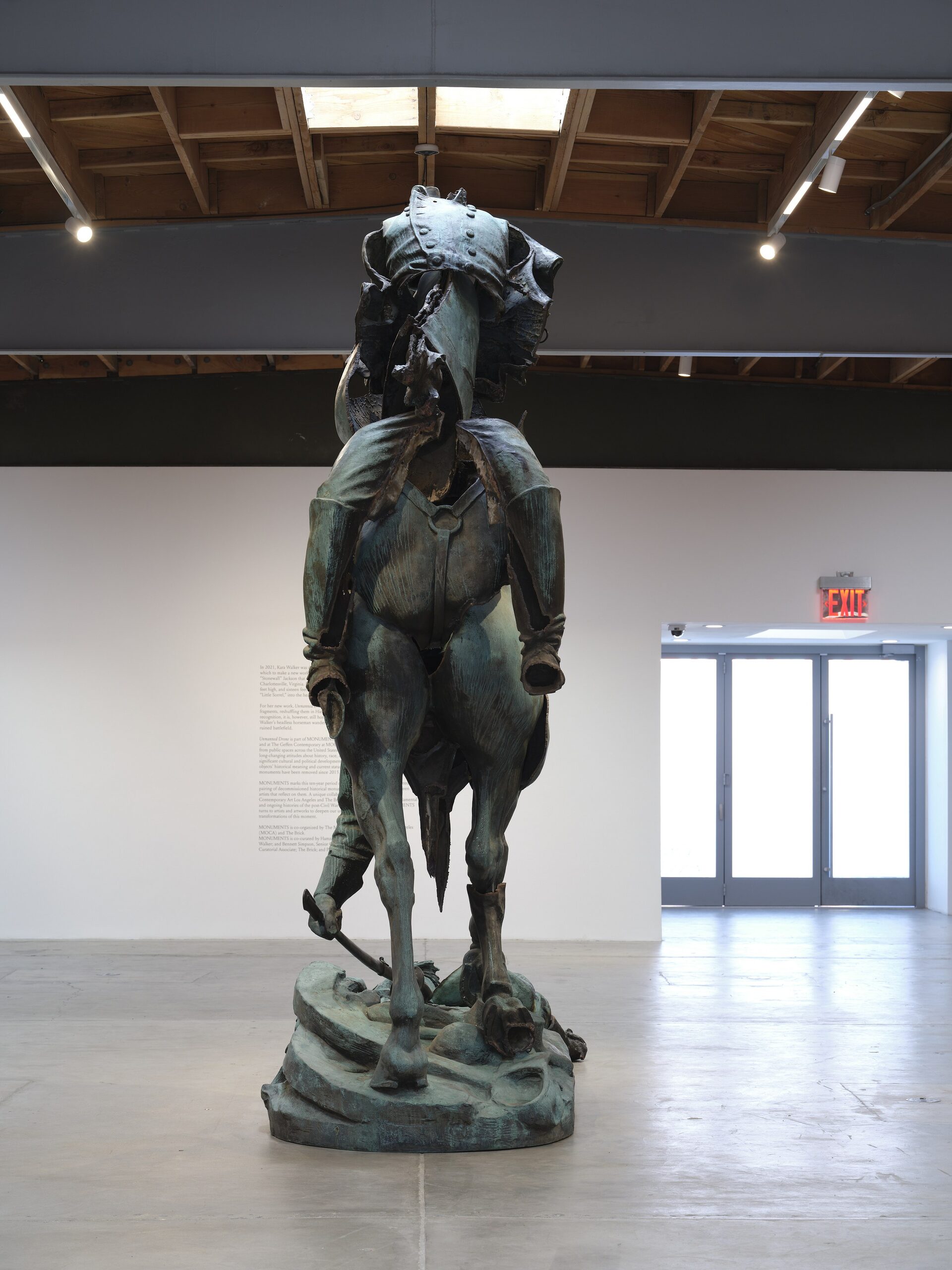 Co-organized and co-presented by The Museum of Contemporary Art (MOCA) and The Brick, MONUMENTS marks the recent wave of monument removals as a historic moment. The exhibition reflects on the histories and legacies of post-Civil War America as they continue to resonate today, bringing together a selection of decommissioned monuments, many of which are Confederate, with contemporary artworks borrowed and newly created for the occasion. Removed from their original outdoor public context, the monuments in the exhibition will be shown in their varying states of transformation, from unmarred to heavily vandalized.