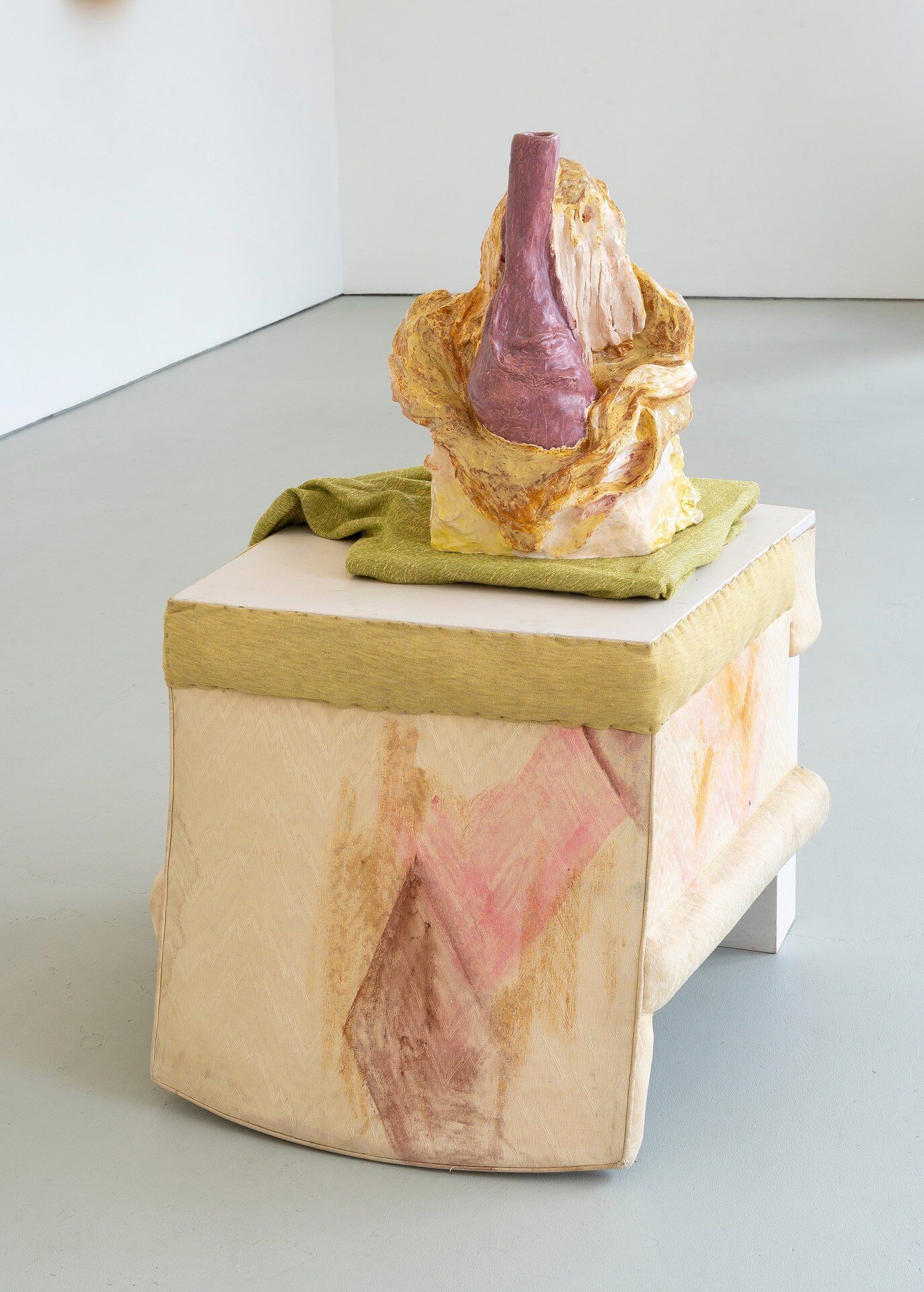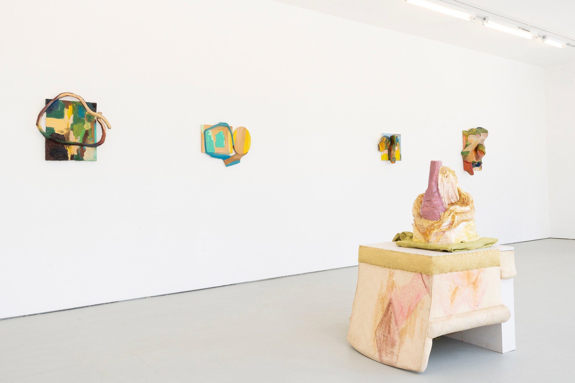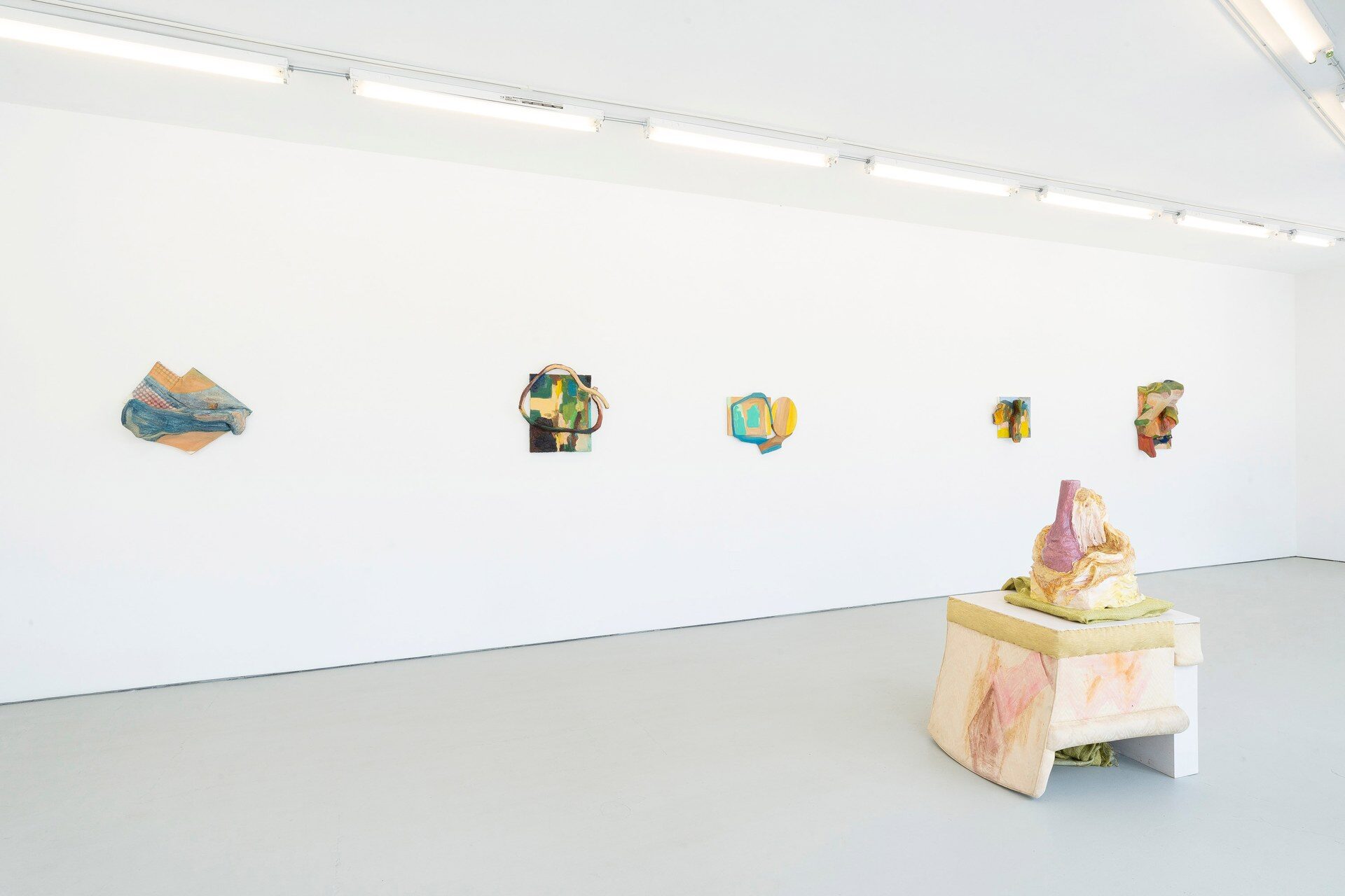 The Green Gallery is excited to present Jessica Jackson Hutchins Gimme Gimme Starlight. This will be the artist's second exhibition at the gallery and sixth show in Wisconsin. Hutchins has previously exhibited at Hermetic Gallery, INOVA, John Michael Kohler Art Center and Sculpture Milwaukee. In this presentation, the artist deploys and extends her visual and material vocabulary positing a dynamic allusion to the body against something more graphic, rigid and solid. This play leaves the viewer somewhere in between; amidst knowable references and potentiality presiding within the enigmatic.