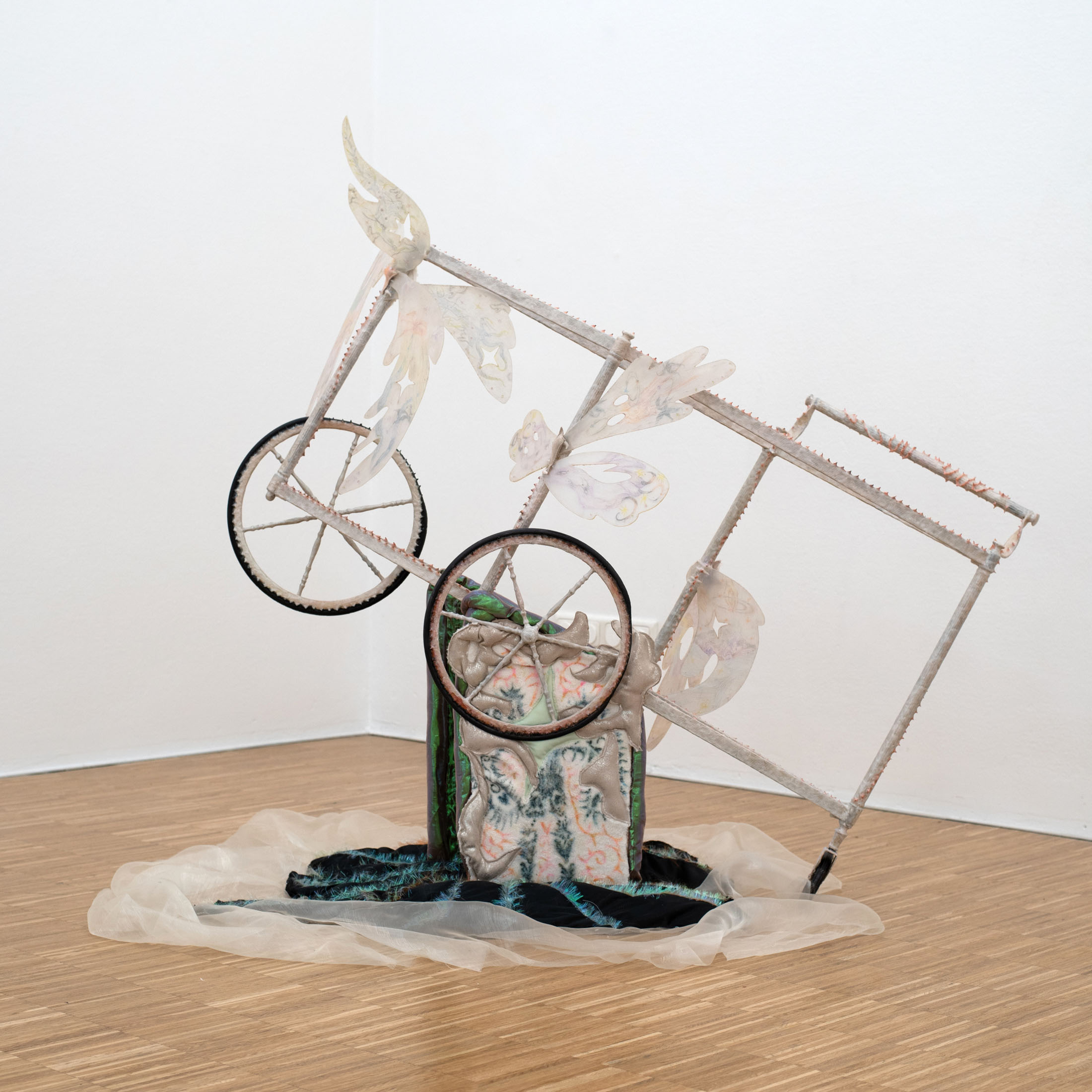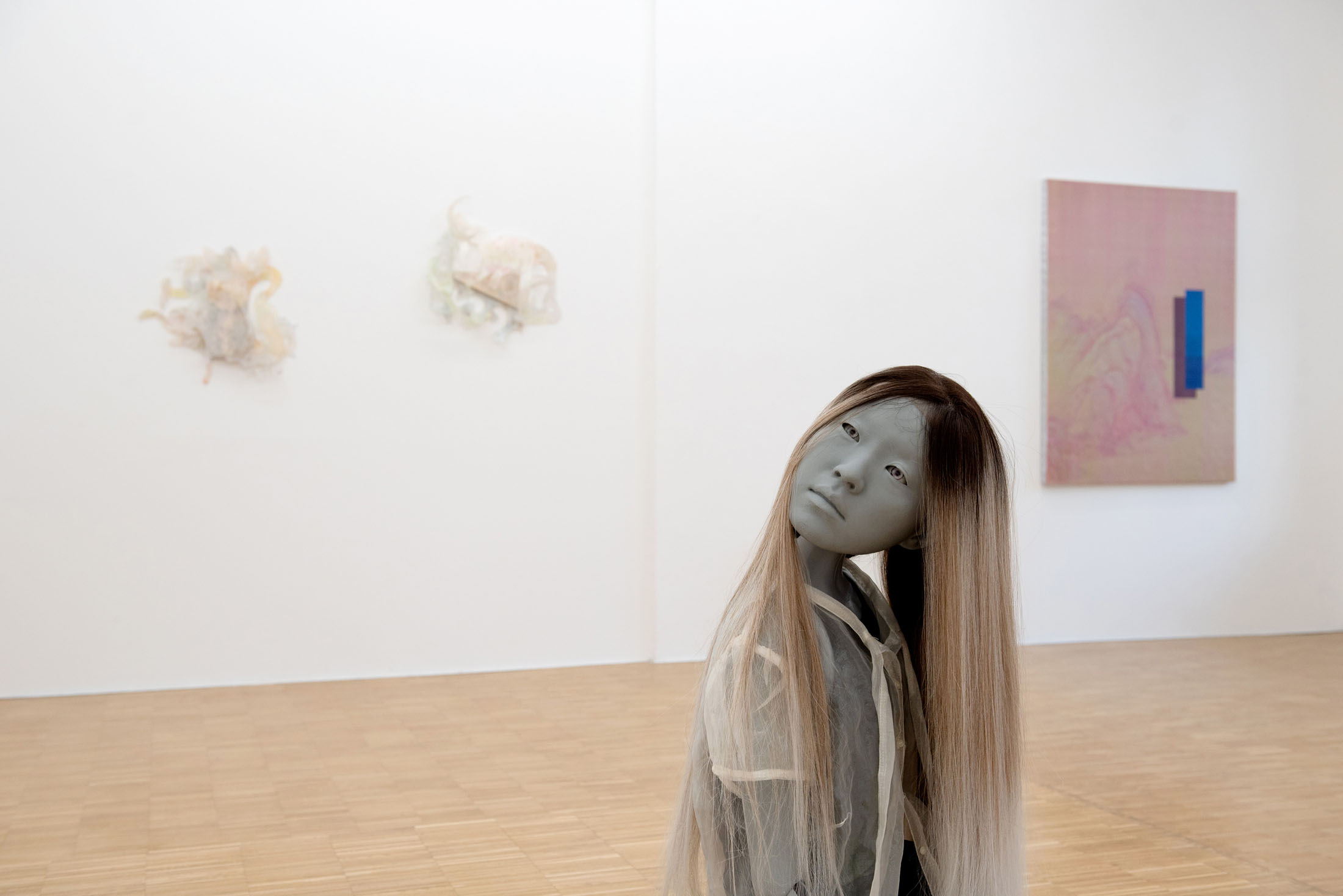 “Motions to Unfurl” brings together Ye Cheng, Eunju Hong, and Jiwon Song to examine how hybrid forms of life and perception emerge from the entanglements of technology, mythology, and material culture. The exhibition unfolds as an inquiry into how bodies—both human and more-than-human—become sites where belonging, loss, and transformation are inscribed. Through painterly, sculptural, and performative interventions, the artists probe the boundaries between memory and matter, past and future, visibility and disappearance, and the exhibition unfolds as a dialogue that extends beyond the gallery walls into the porous terrain of memory, imagination, and the posthuman.