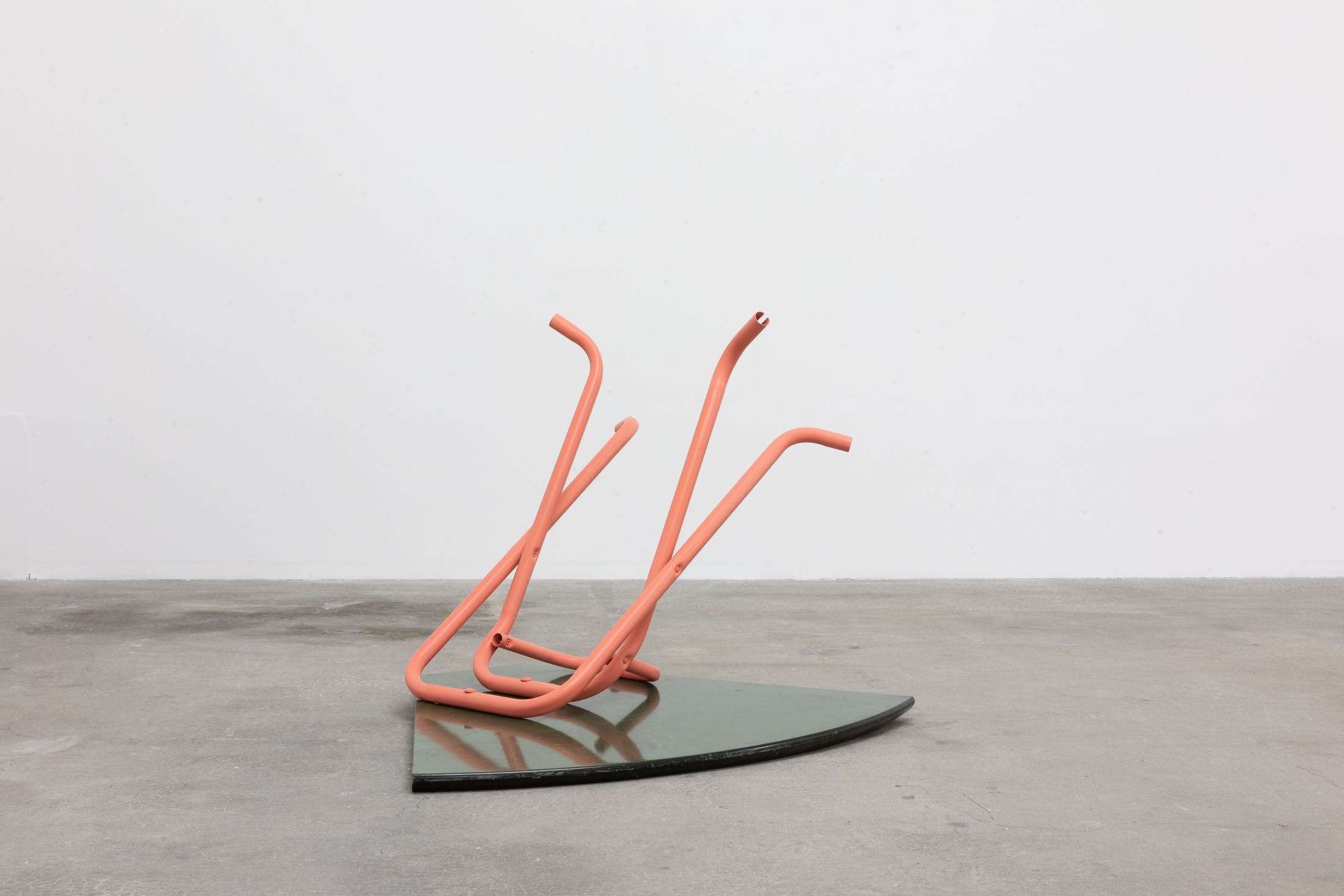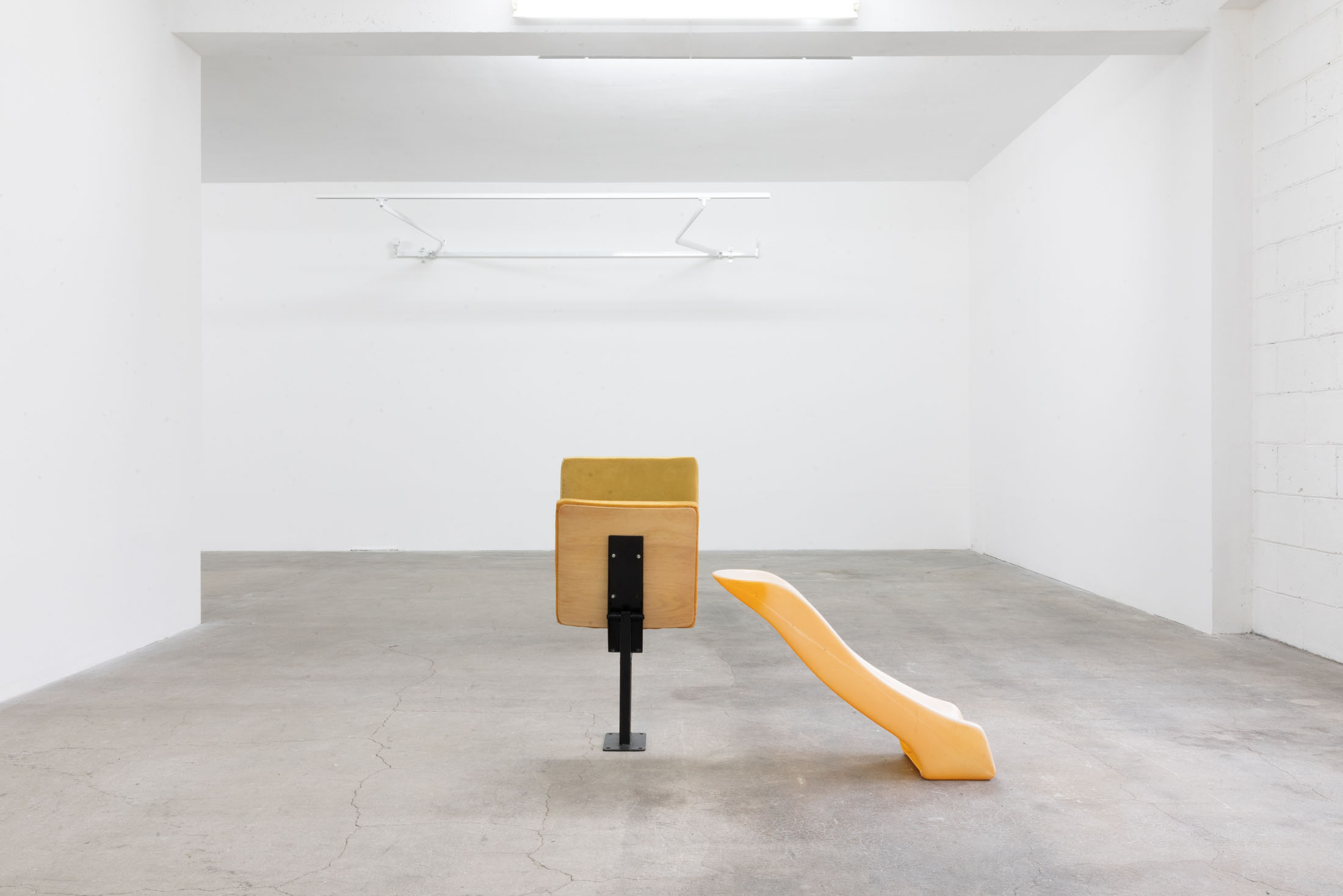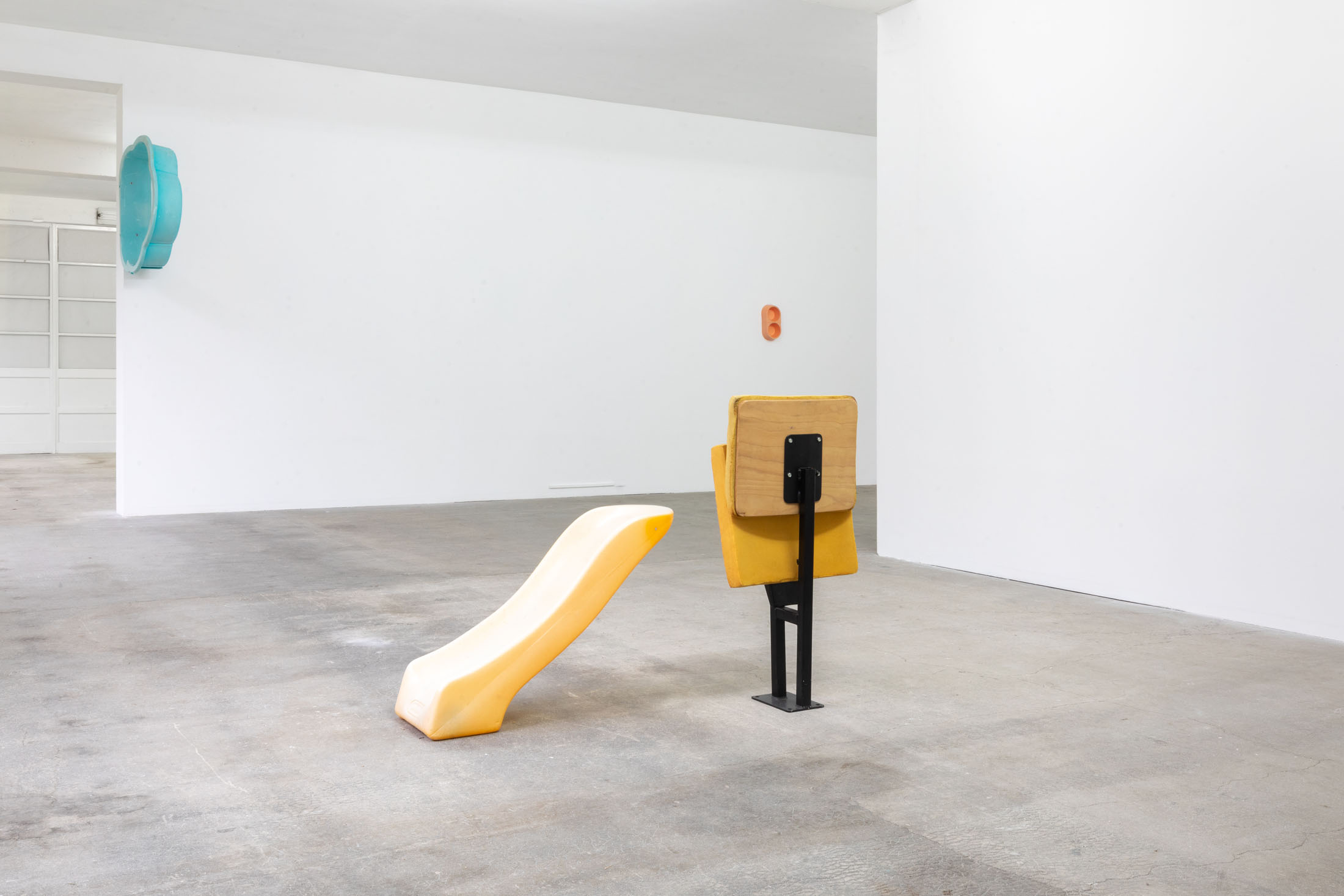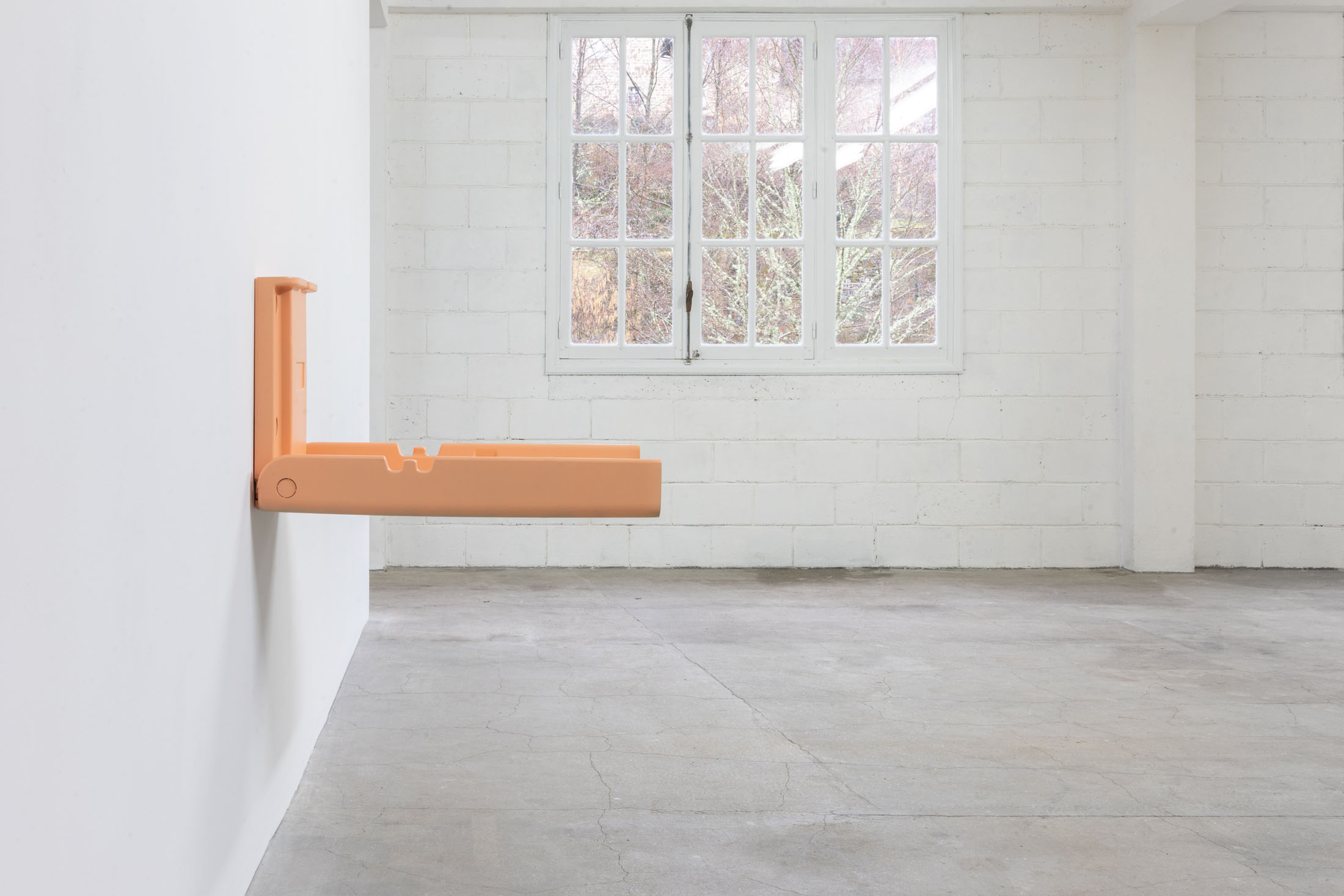 Gyan Panchal’s sculptures take shape from objects gleaned from the roadside; found objects (a sandbox, an awning, a lock…) discarded because they are obsolete and whose function, suspended midway, still evokes human relationships, our engagement with others and with the outside world. Like a rag-and-bone man, the artist collects them in his studio and, with careful gestures, often reduced to their simplest expression (washing, cutting, sanding, assembling, staining…), he accompanies these objects to the threshold of themselves. Transformed into sculptures, these altered forms are returned to the world; forms in negotiation with their newfound exposure.