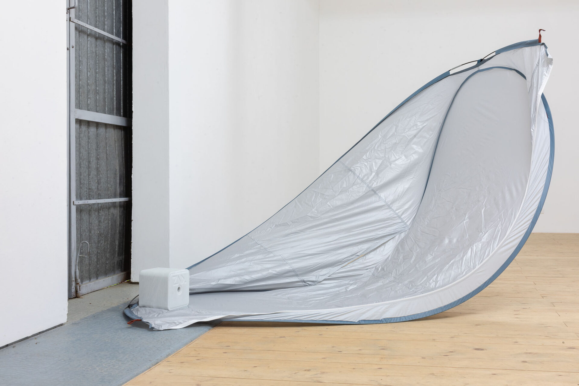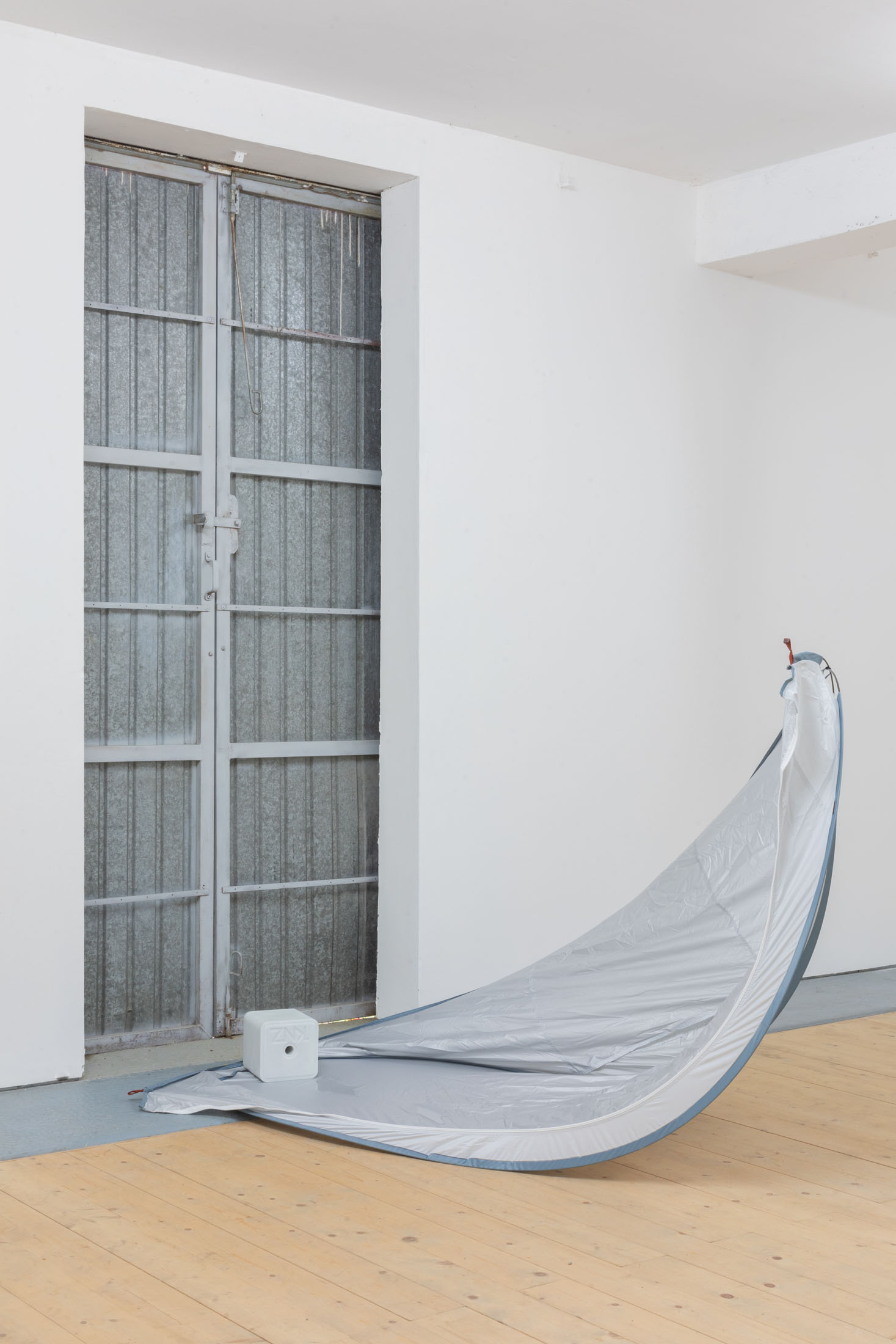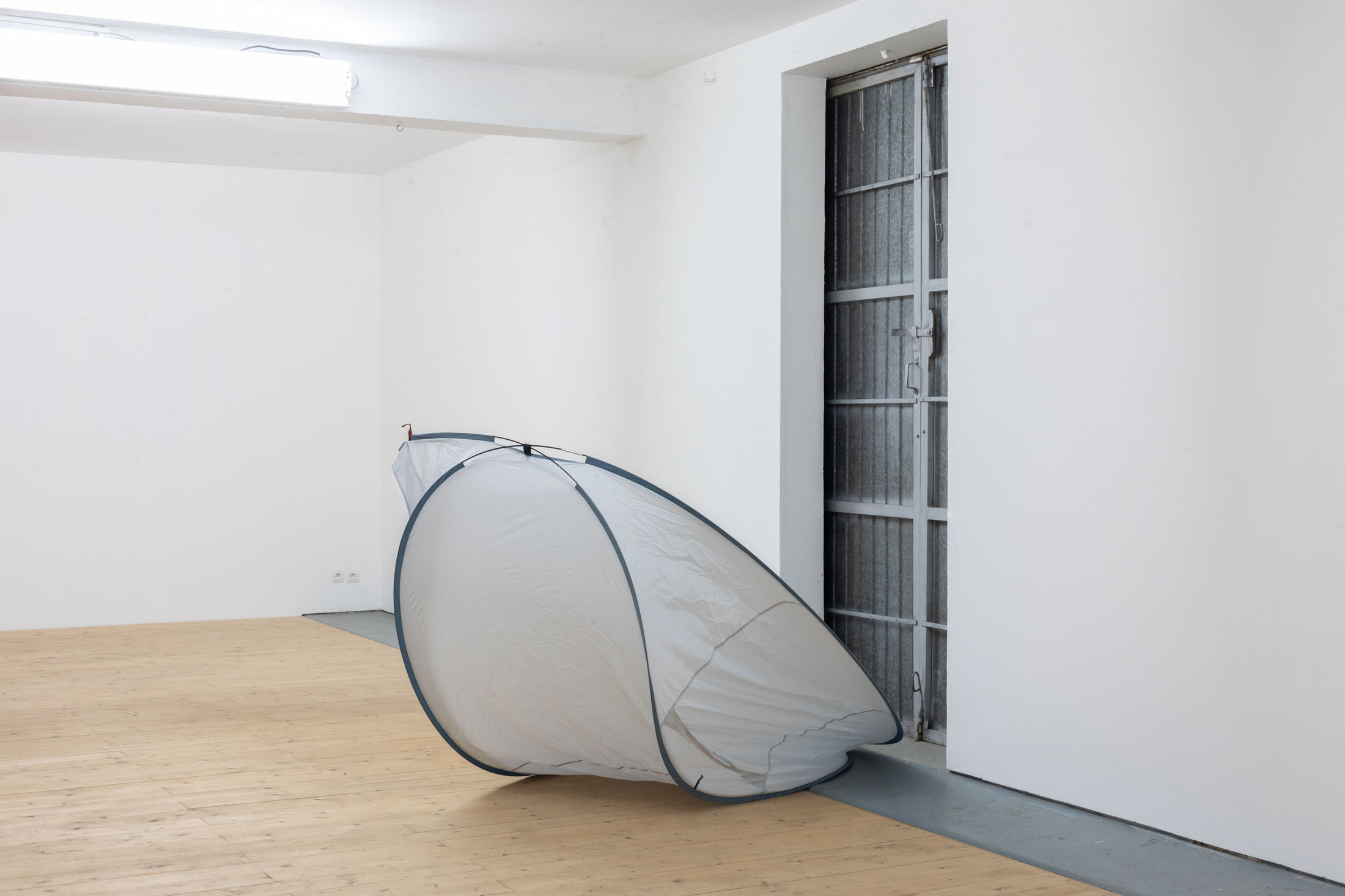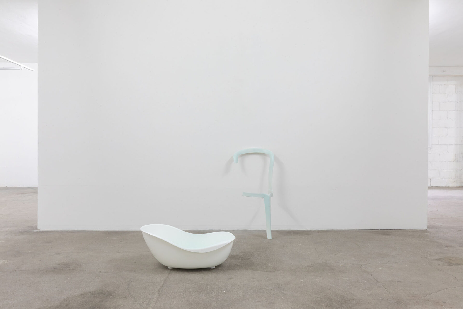 Gyan Panchal’s sculptures take shape from objects gleaned from the roadside; found objects (a sandbox, an awning, a lock…) discarded because they are obsolete and whose function, suspended midway, still evokes human relationships, our engagement with others and with the outside world. Like a rag-and-bone man, the artist collects them in his studio and, with careful gestures, often reduced to their simplest expression (washing, cutting, sanding, assembling, staining…), he accompanies these objects to the threshold of themselves. Transformed into sculptures, these altered forms are returned to the world; forms in negotiation with their newfound exposure.