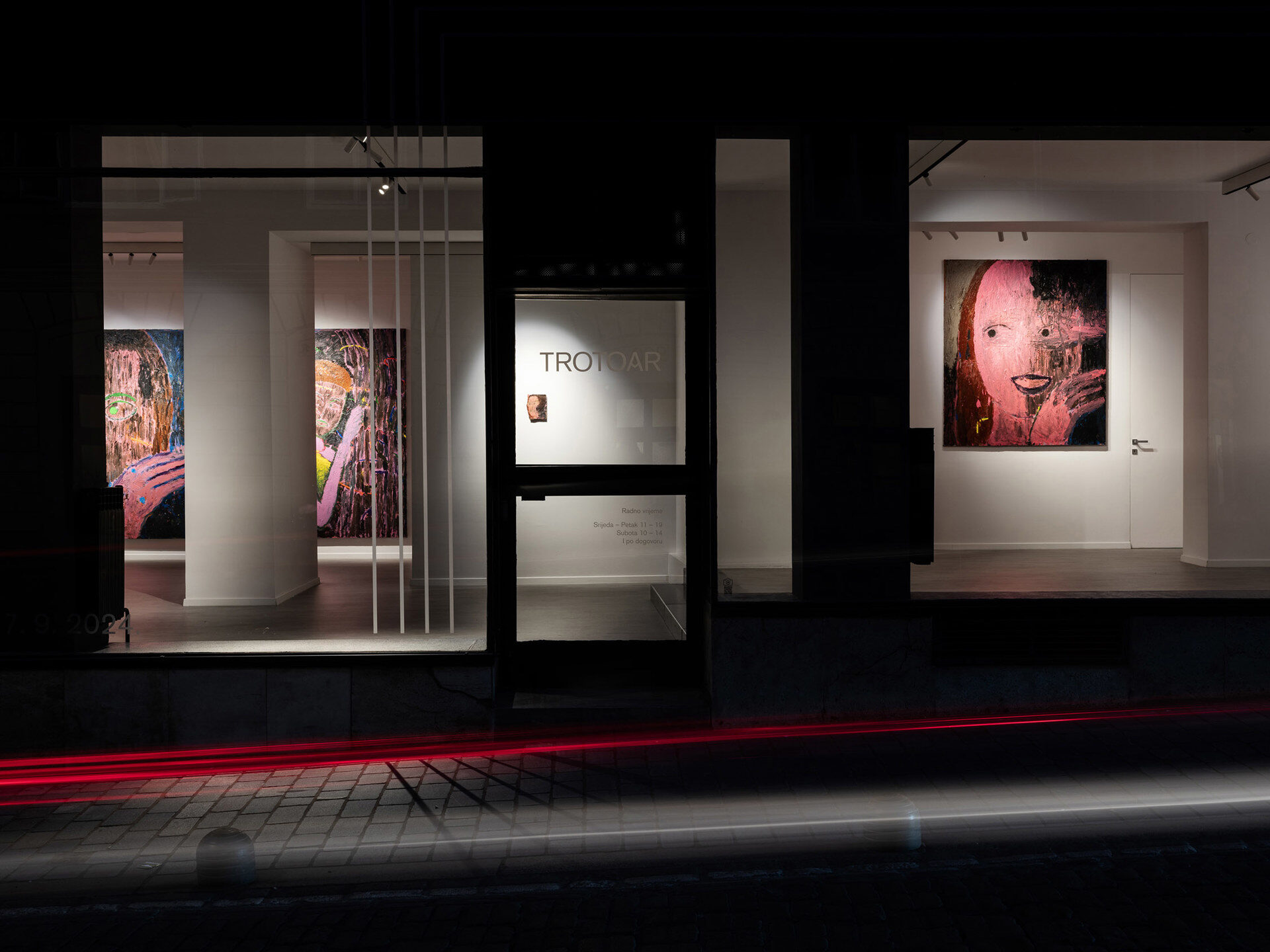 TROTOAR is pleased to present ‘Mara & Lara’, an exhibition of new paintings by Marko Zeman, curated by Martina Marić Rodrigues. In his first exhibition with the gallery, the artist explores his fascination with the shapes, colors and textures, frequently embracing the principle of randomness. Zeman’s monumental paintings are distinguished by an unconstrained painterly style that challenges the ordinary aesthetic norms. He captures everyday motifs and fictional figures, transforming them into twisted two-dimensional scenes, infused with humor.