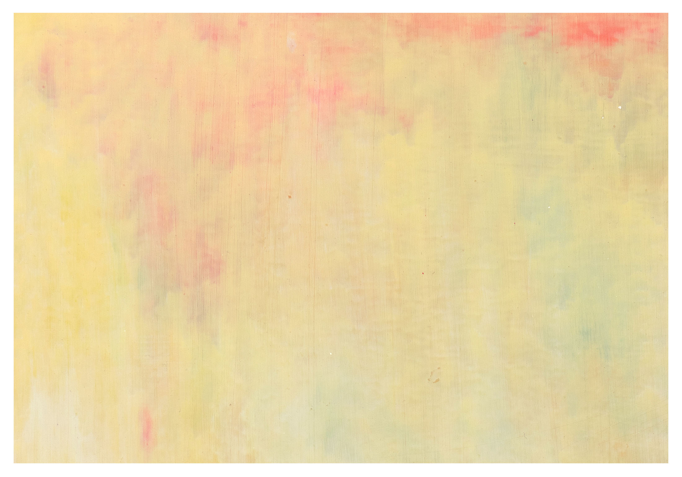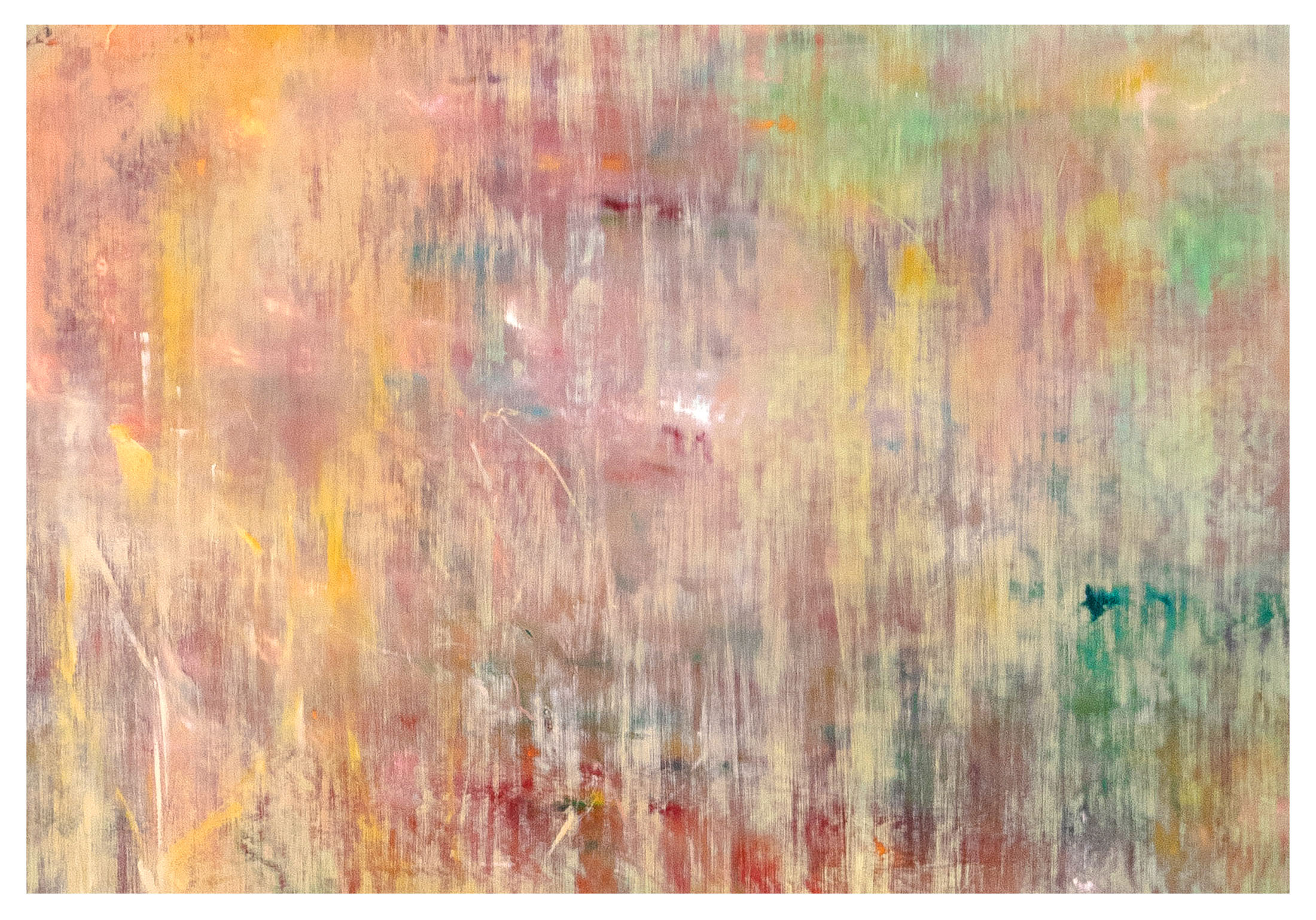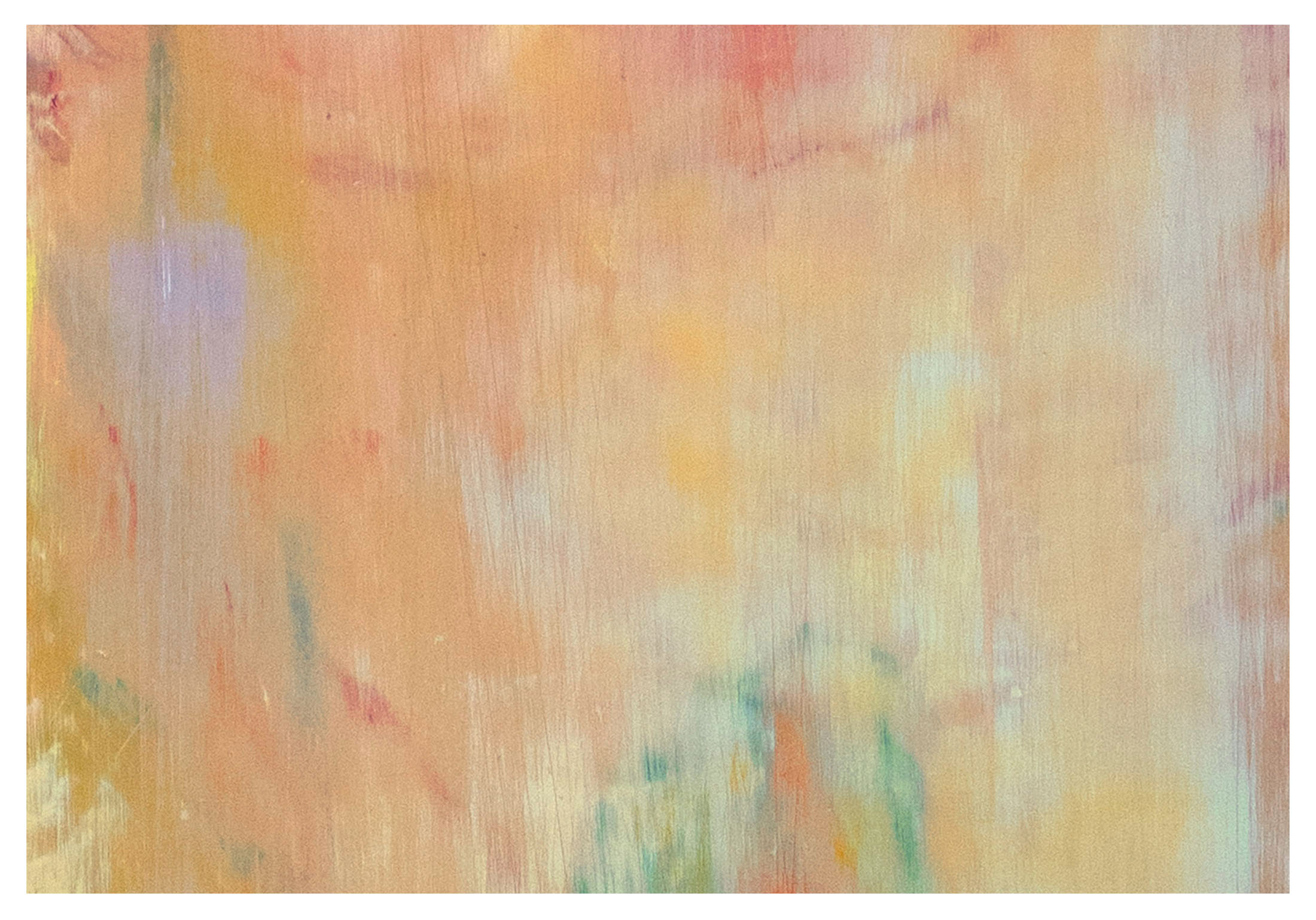 The five paintings occupying the gallery’s entrance appear at first as abstractions of light and colour, with repetitive, layered, and erased marks bringing to mind the weathered surfaces of abandoned buildings. Yet, the works do not occupy a purely abstract space, but instead…
