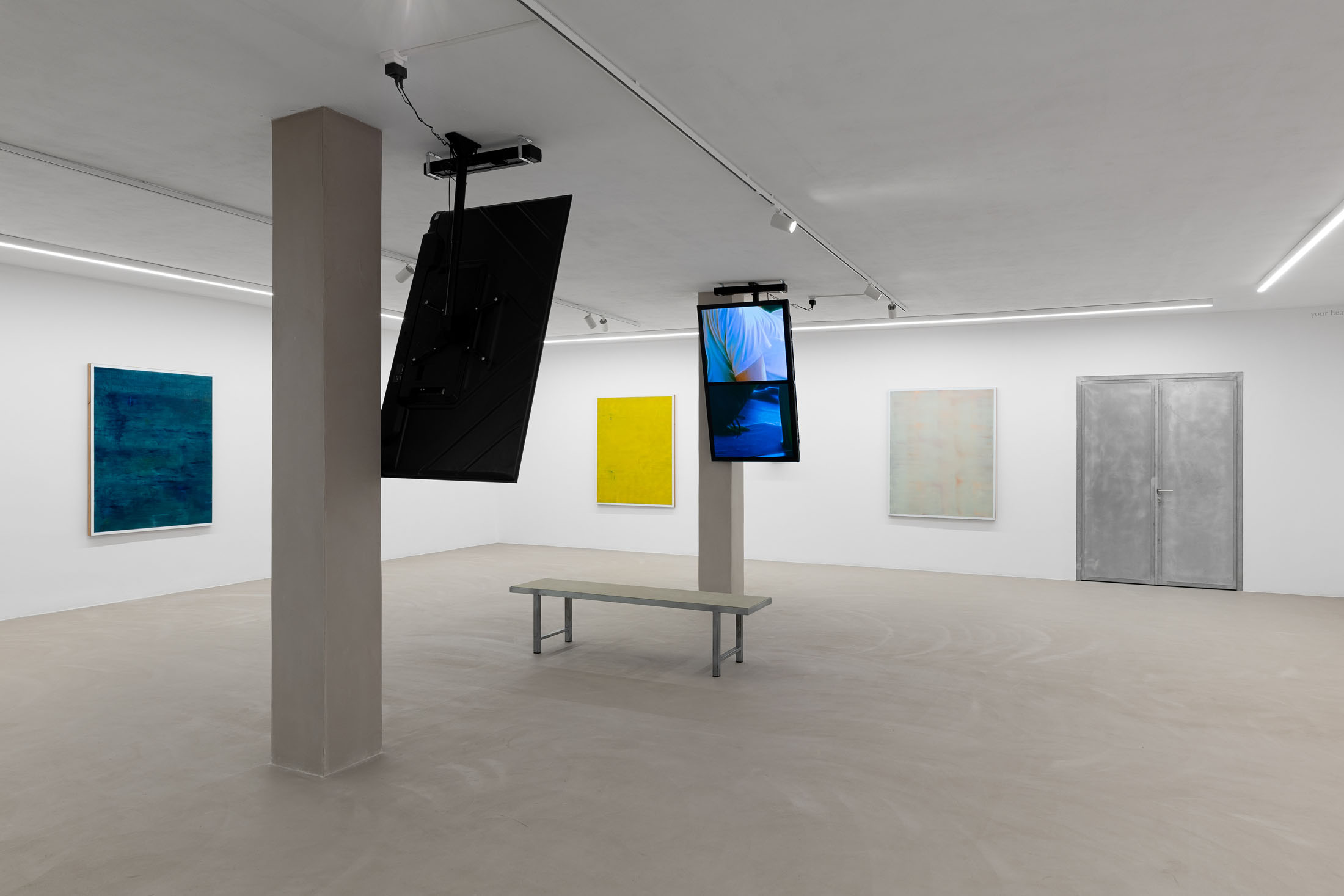While language emerges as a key component of the exhibition – from the rhythmic narration that provides the backbone to Warner’s film you want to come, and to leave richer to the fragments of the artist’s own poems embedded in his paintings – it is evident that the work’s material qualities (whether colour, surface, cadence or line) offer up a mode of thinking beyond what is possible in words.