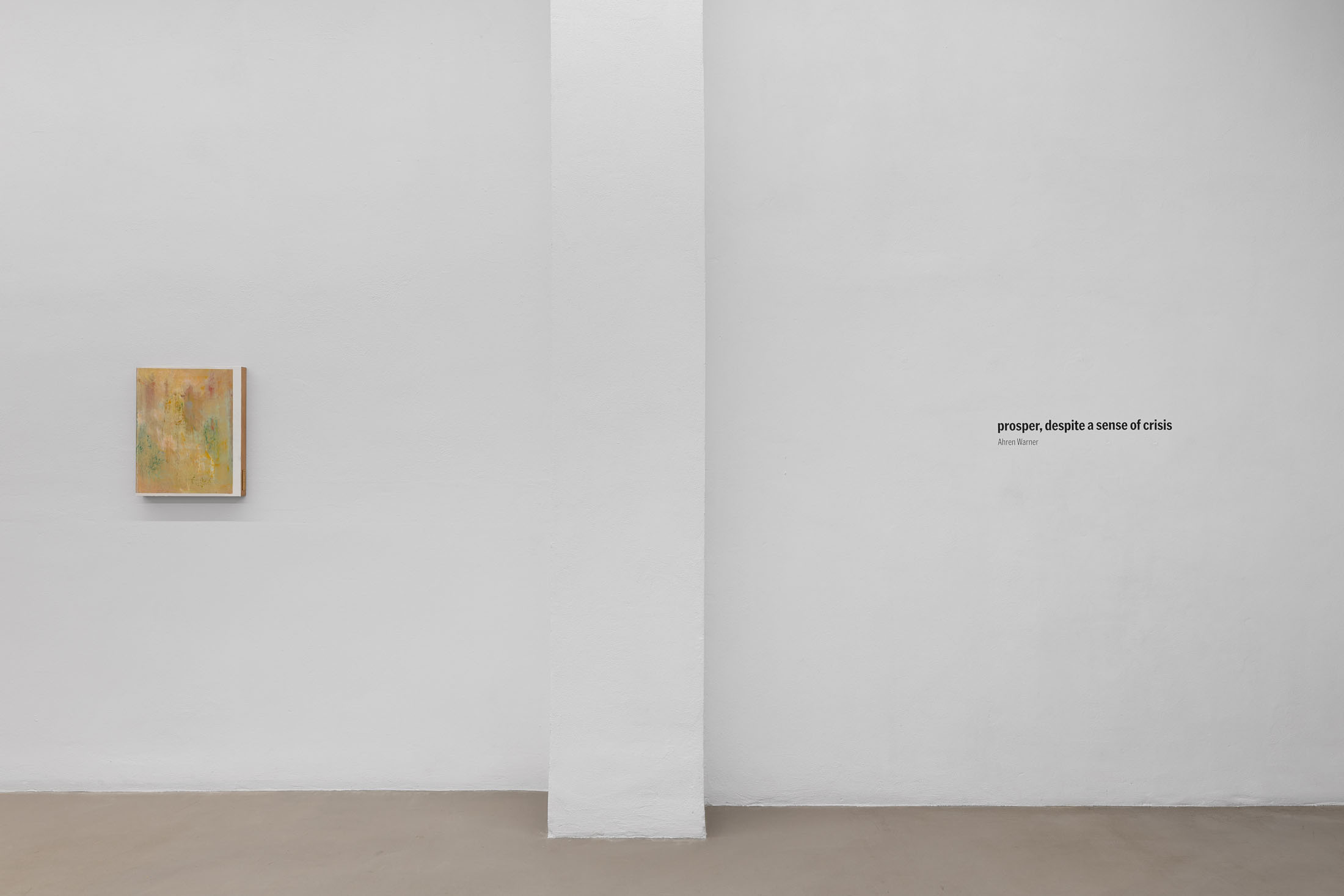 In prosper, despite a sense of crisis, Ahren Warner presents a new body of work which ranges across multiple disciplines, including film, wall-based sculpture and painting. Collectively, the work converges to explore the conflict between the alluring ideal of self-optimisation and the lived reality of our flawed selves.