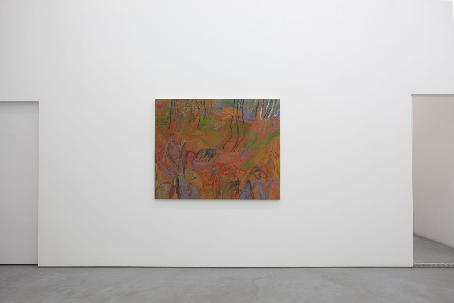 Netrabile’s practice is one of interconnectedness: borne from the natural world, channelled through the body, and returned to the perceiving soul. In this sense, the artist is a poet of the canvas: each of her brushstrokes is a suggestion of something expansive and deeply personal, drawn from the crunch of a twig or the ostensibly impenetrable surface of a stone in the pocket. Indeed, the title of this show – suggesting an intimate and talismanic engagement with nature – originates from the artist’s collection of forest detritus on her daily walks.
