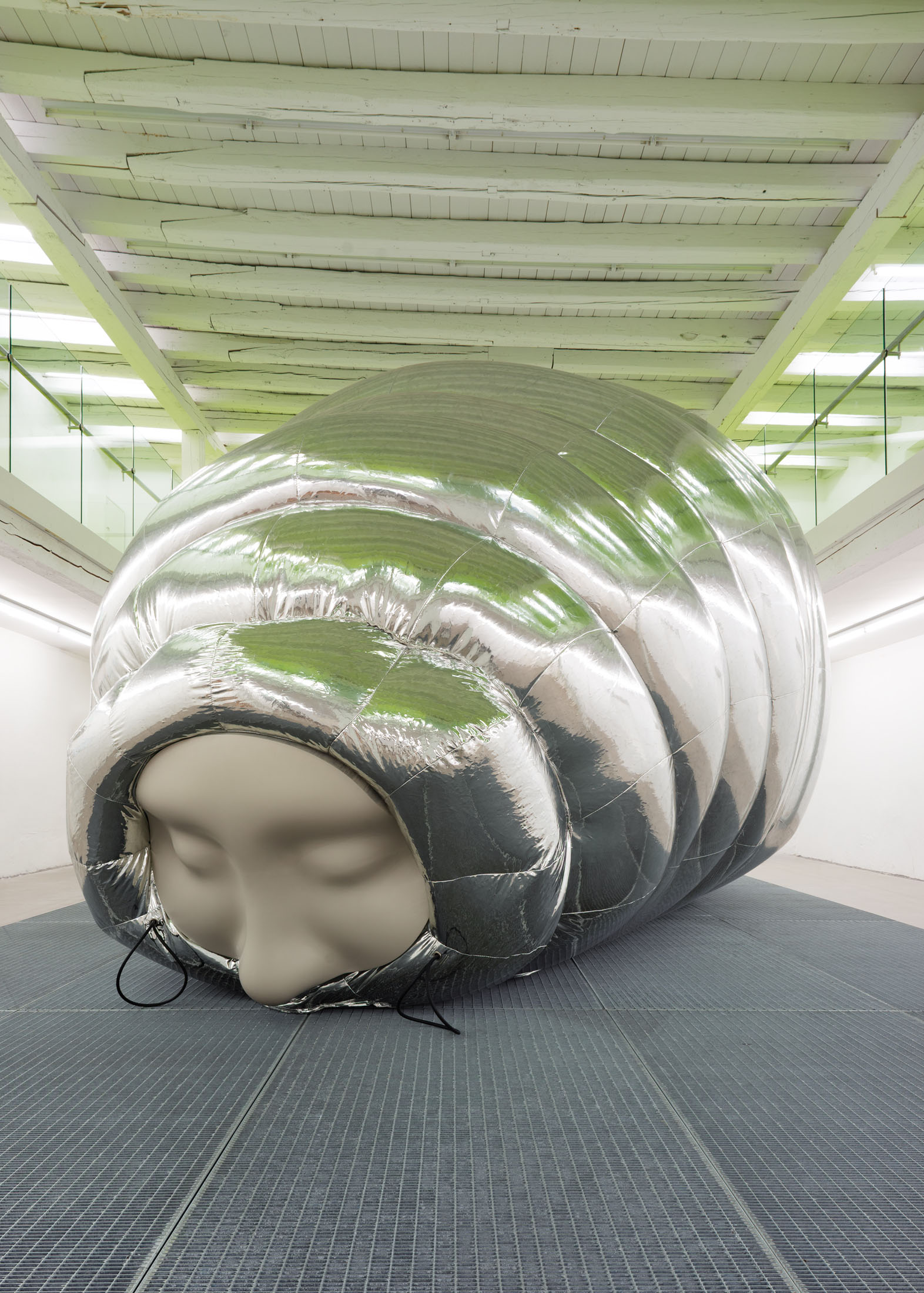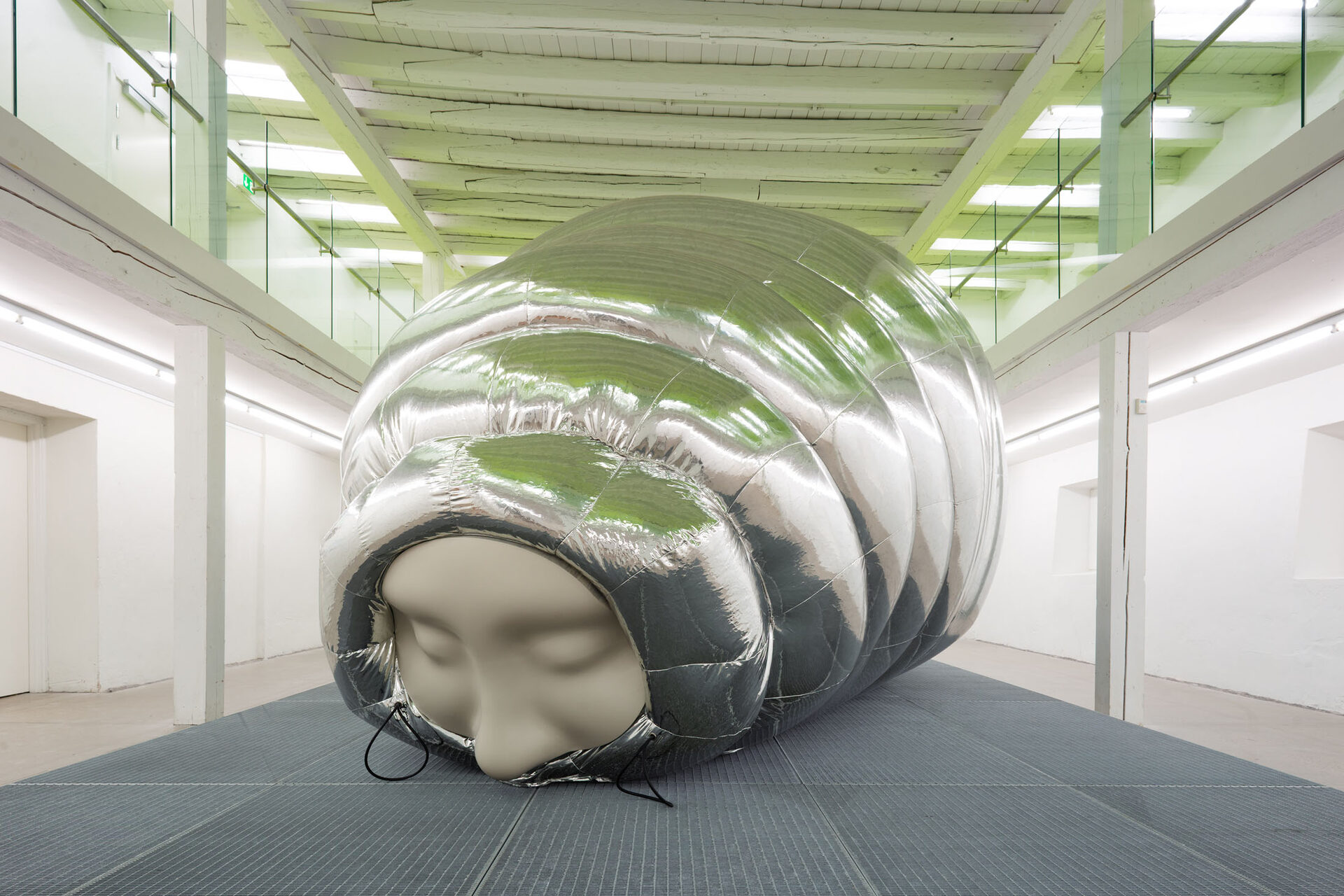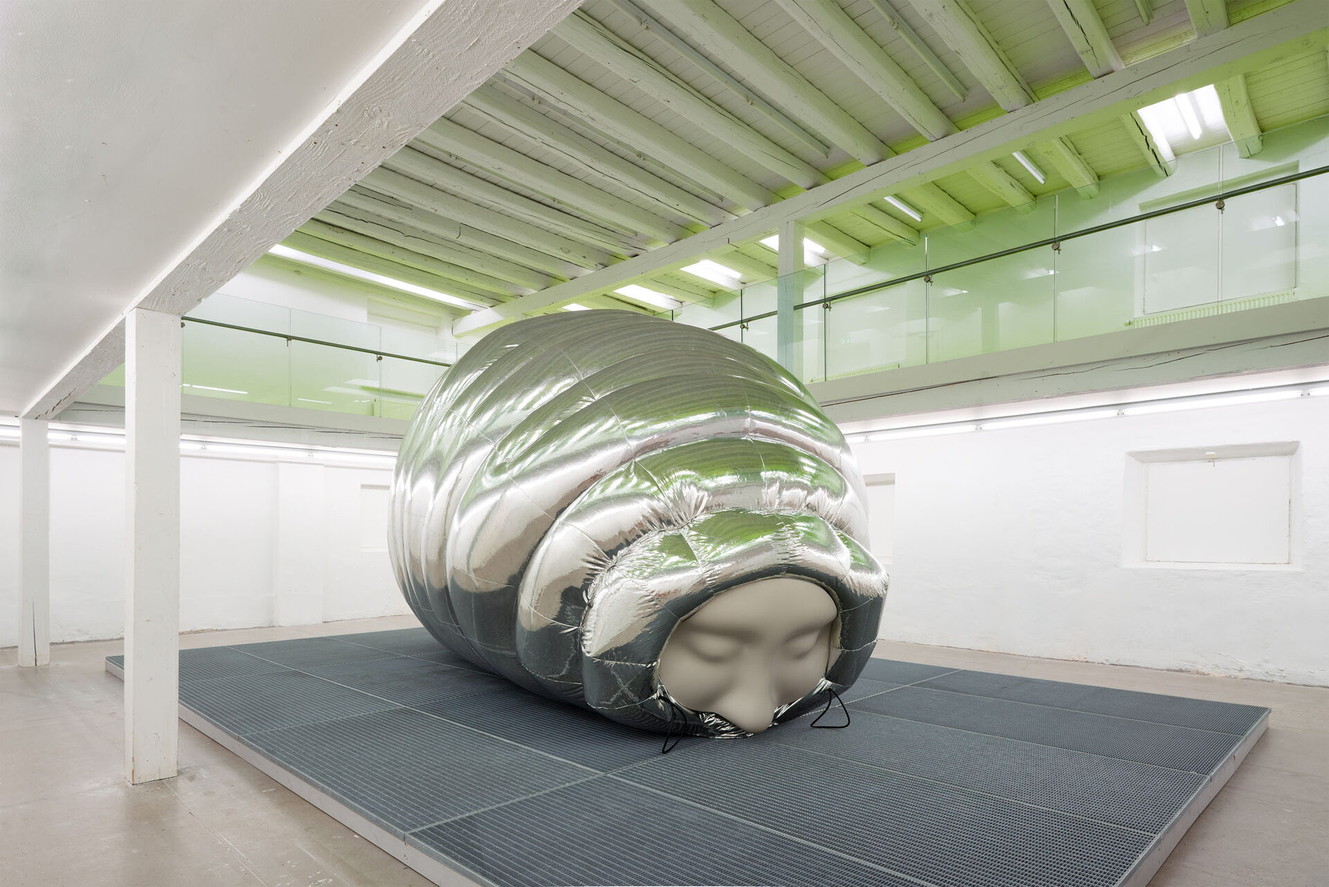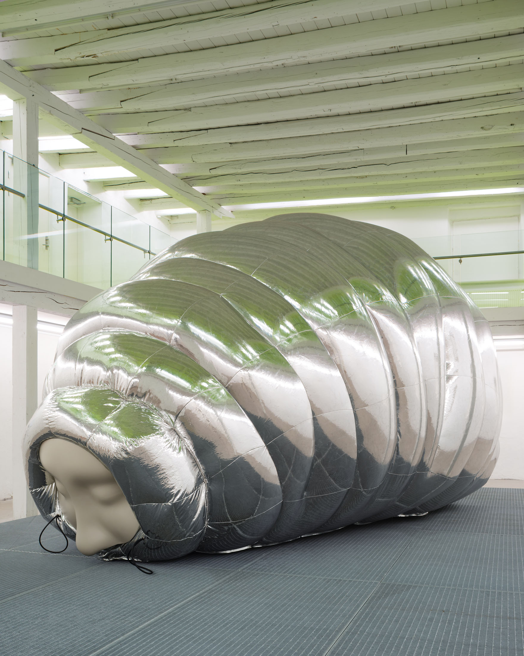 The installation explores the idea of a hybrid between human and tardigrade. A vision that is not far from reality, as researchers are already experimenting with tardigrade genes in human stem cells. The monumental human–tardigrade hybrid can be experienced from both the ground floor and the first floor, while incubators containing tardigrade eggs reinforce the sense of scientific experimentation.