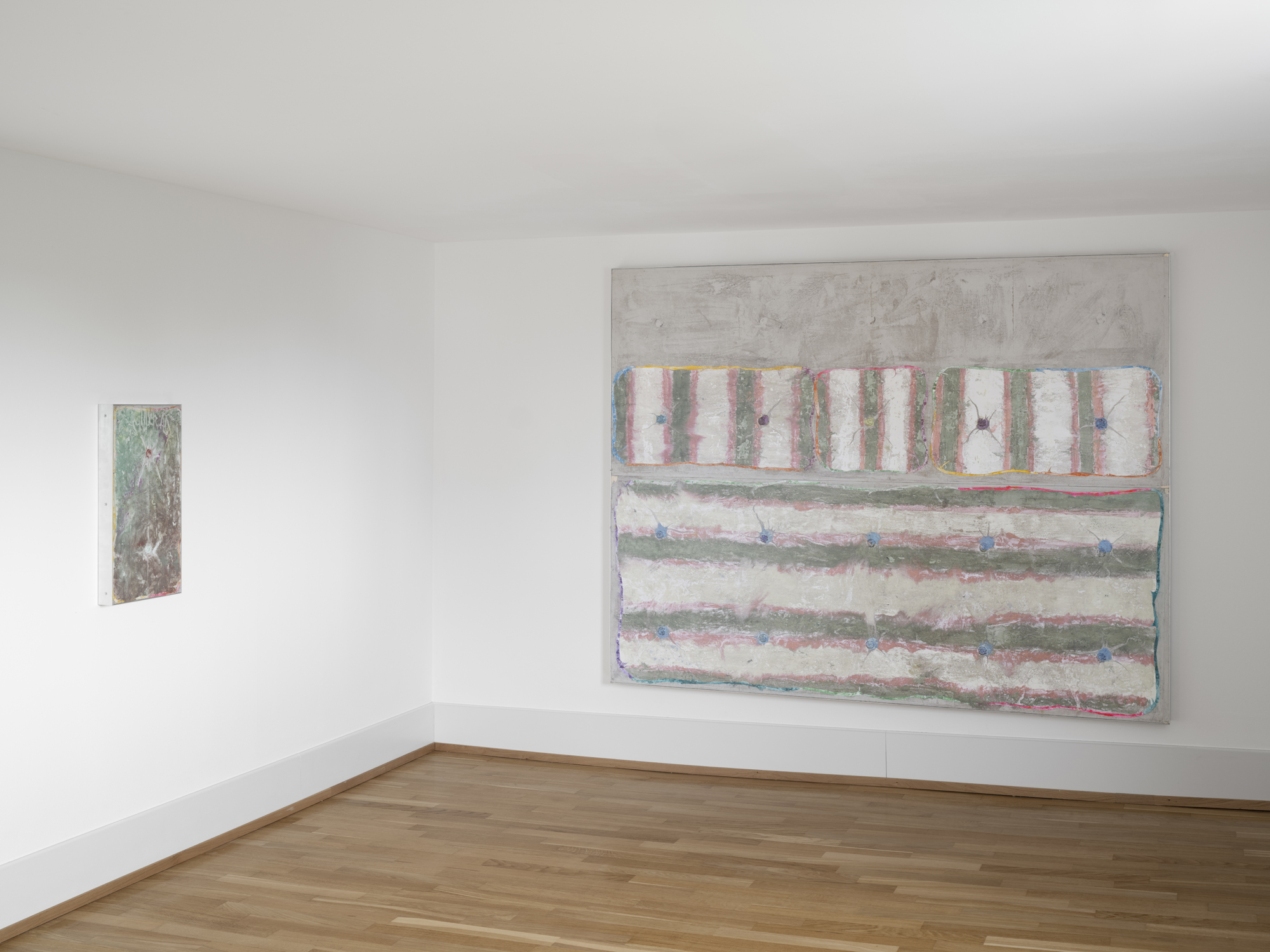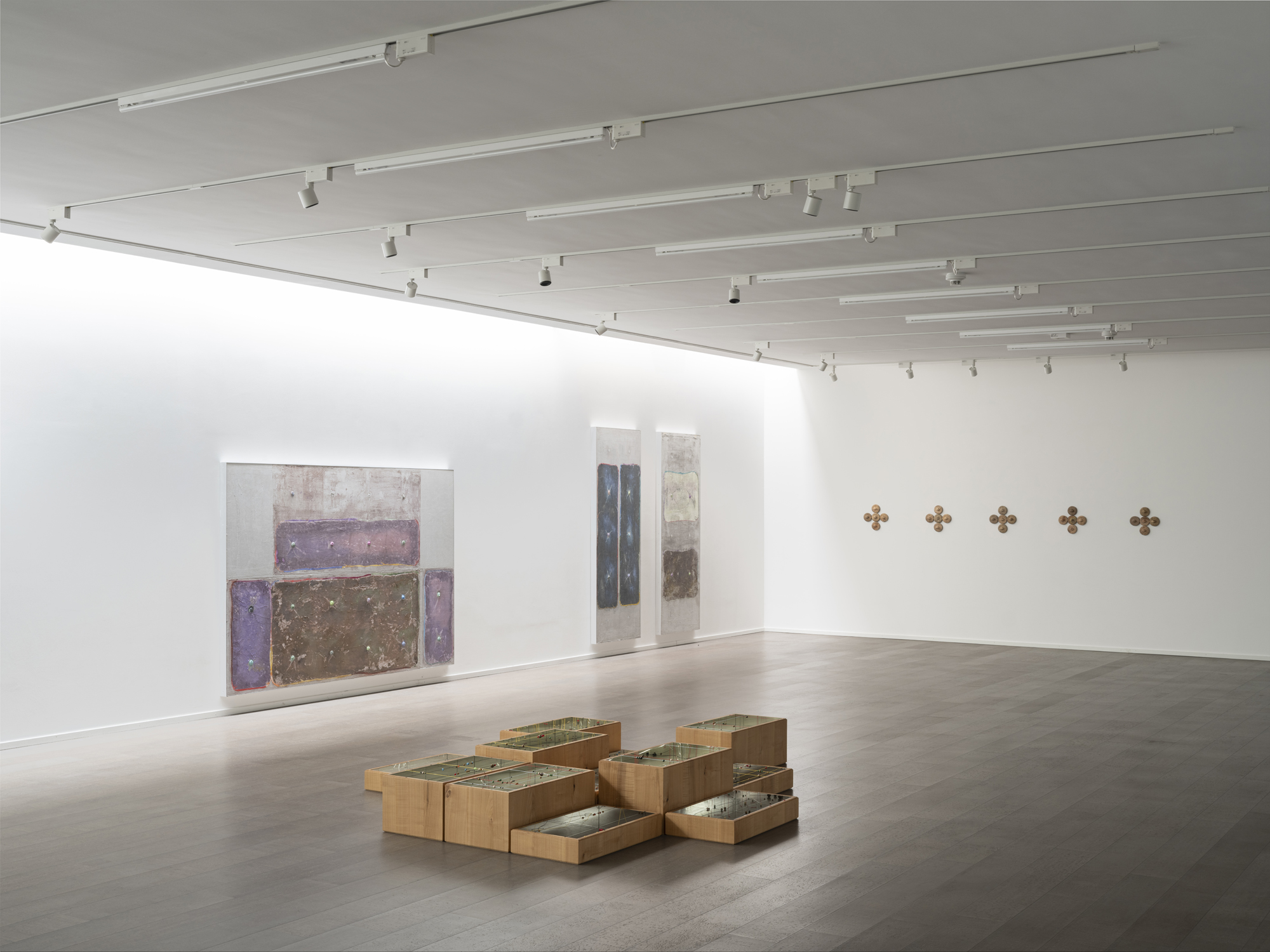 Themes of ritual, whether spiritual or everyday, of temporality, of the evocative power of text and material things, and of the relation to death and the life cycle run through these polysemic, layered works. They make subtle reference to the parental home, places of gathering, the interconnections of the living world, and societal issues. Formal and semantic links are woven between materials, objects and their symbolism, between past and present, private and public spheres, seeking to carve a path through the chaos.
