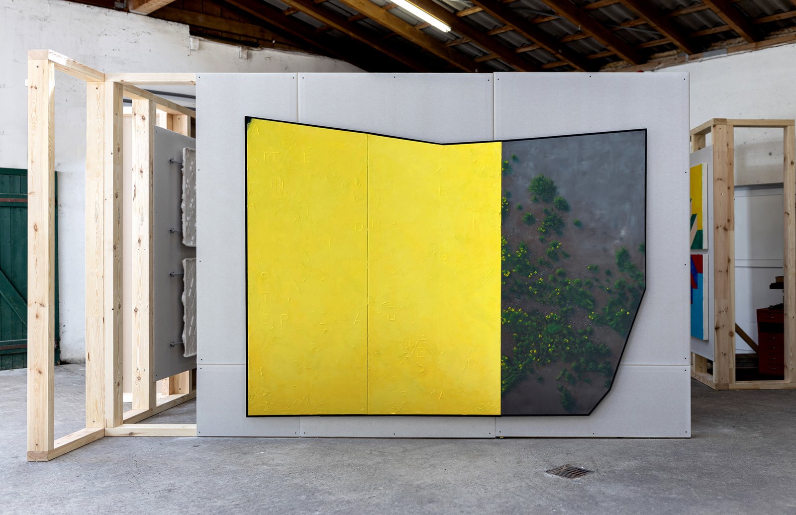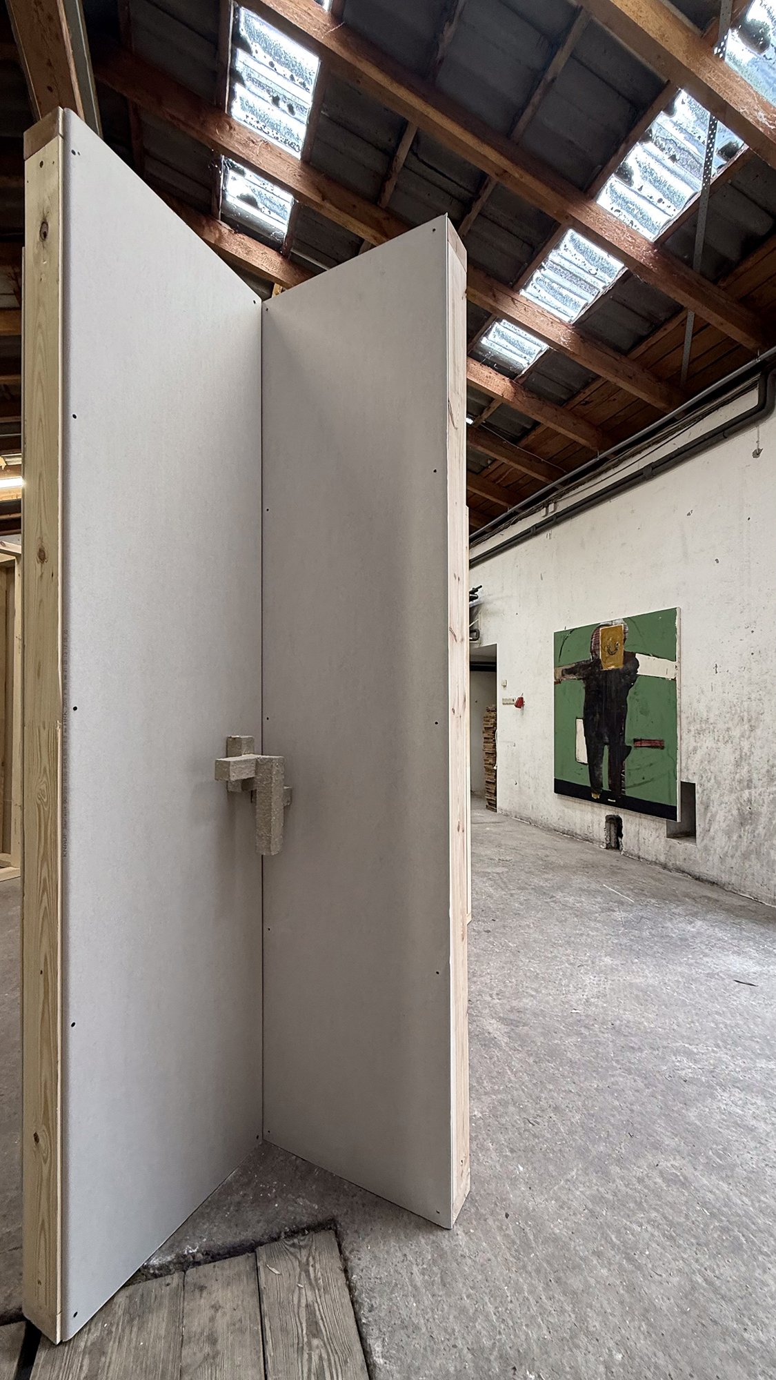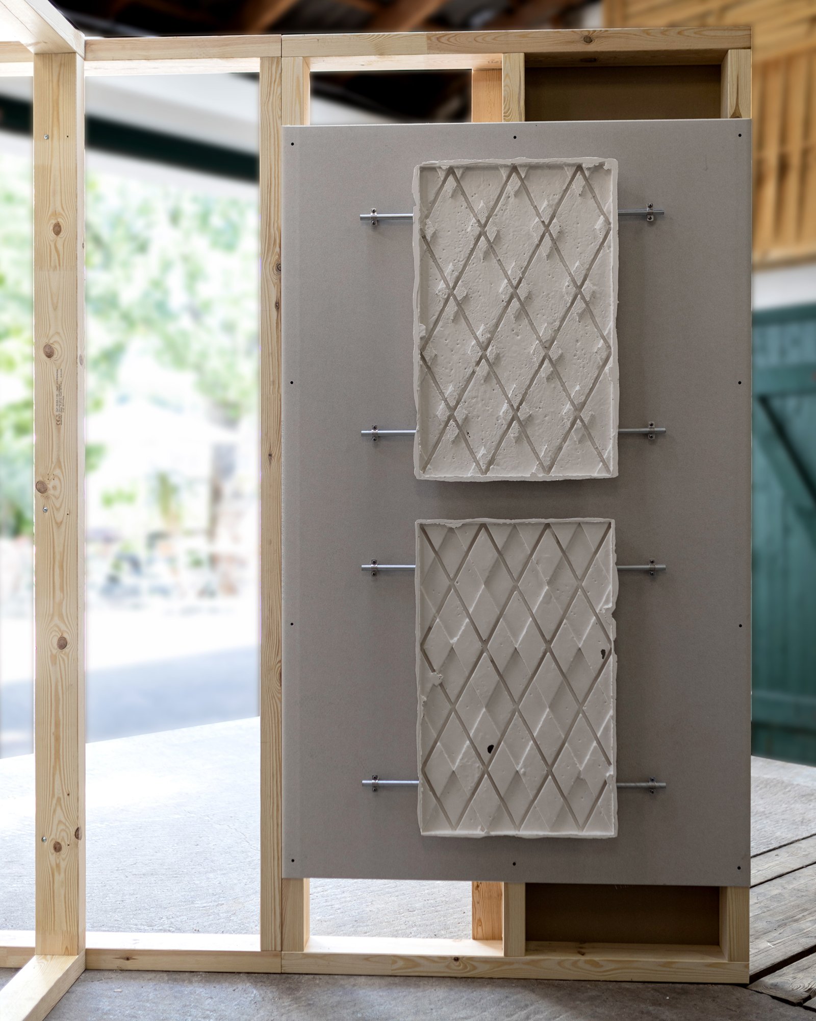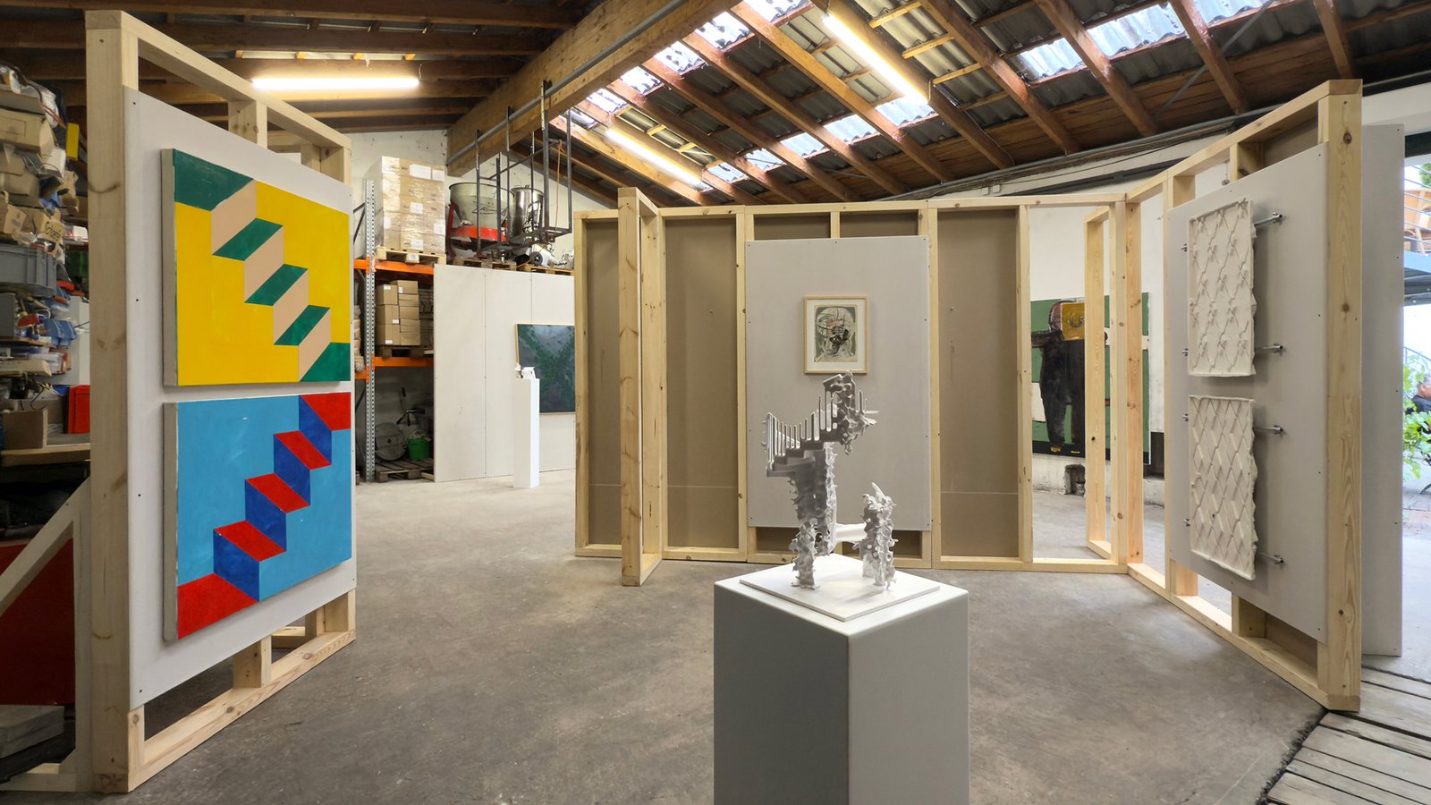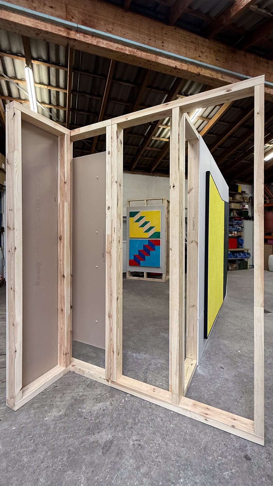 A specially developed modular wall system, inspired by timber frame construction, structures the hall without seeking to neutralize it. It itself refers to forms of dwelling, supporting materials, and spatial formation, becoming a…