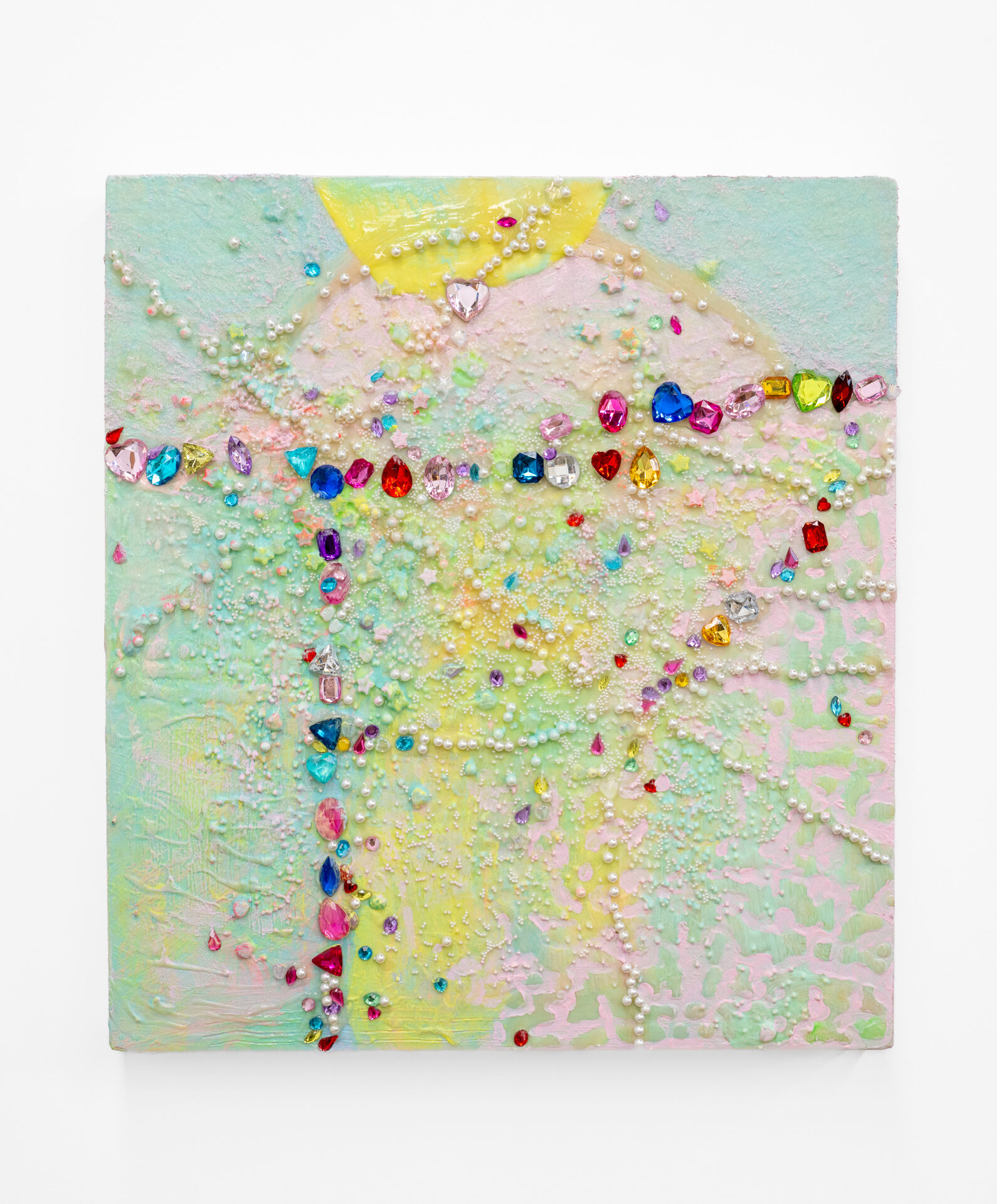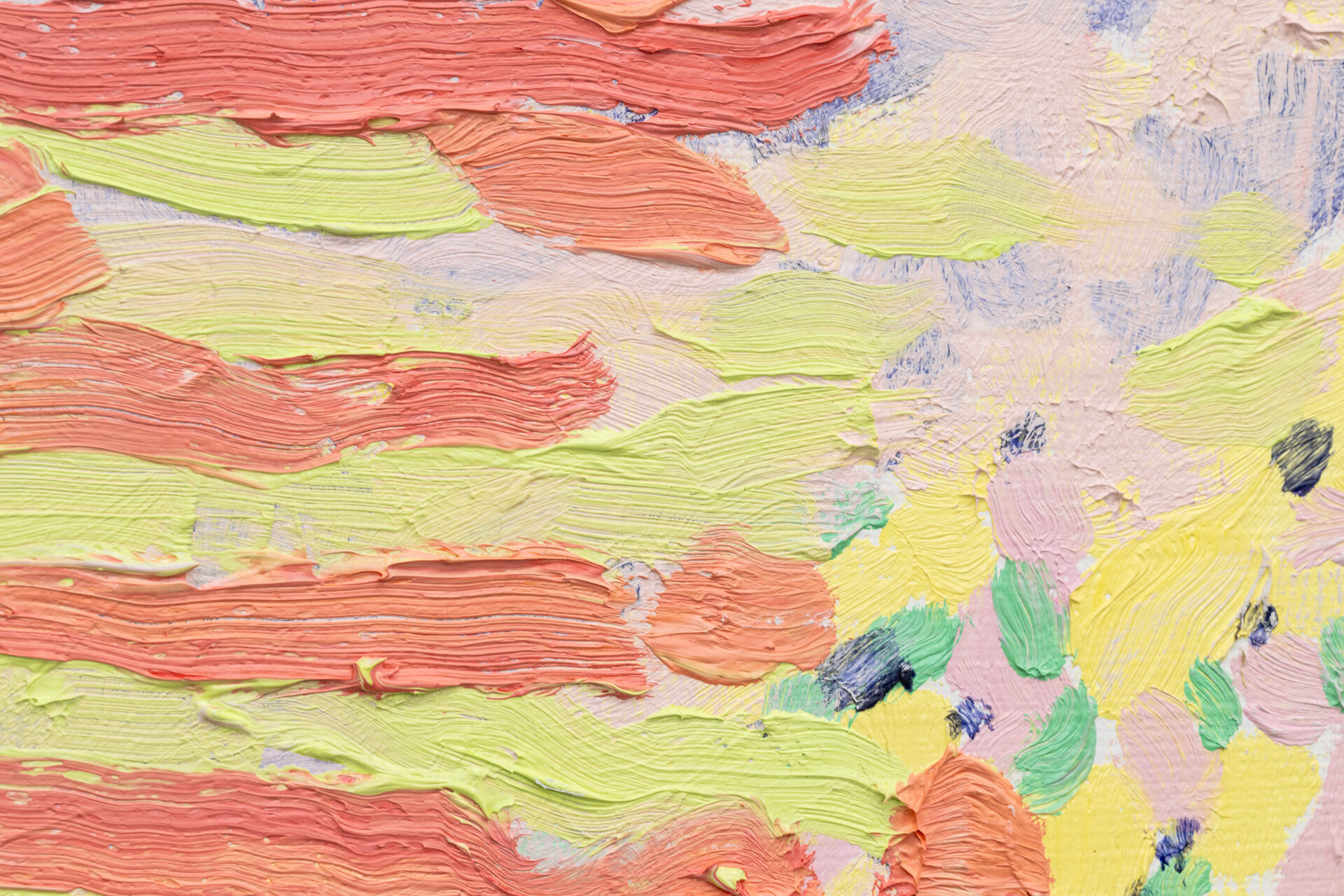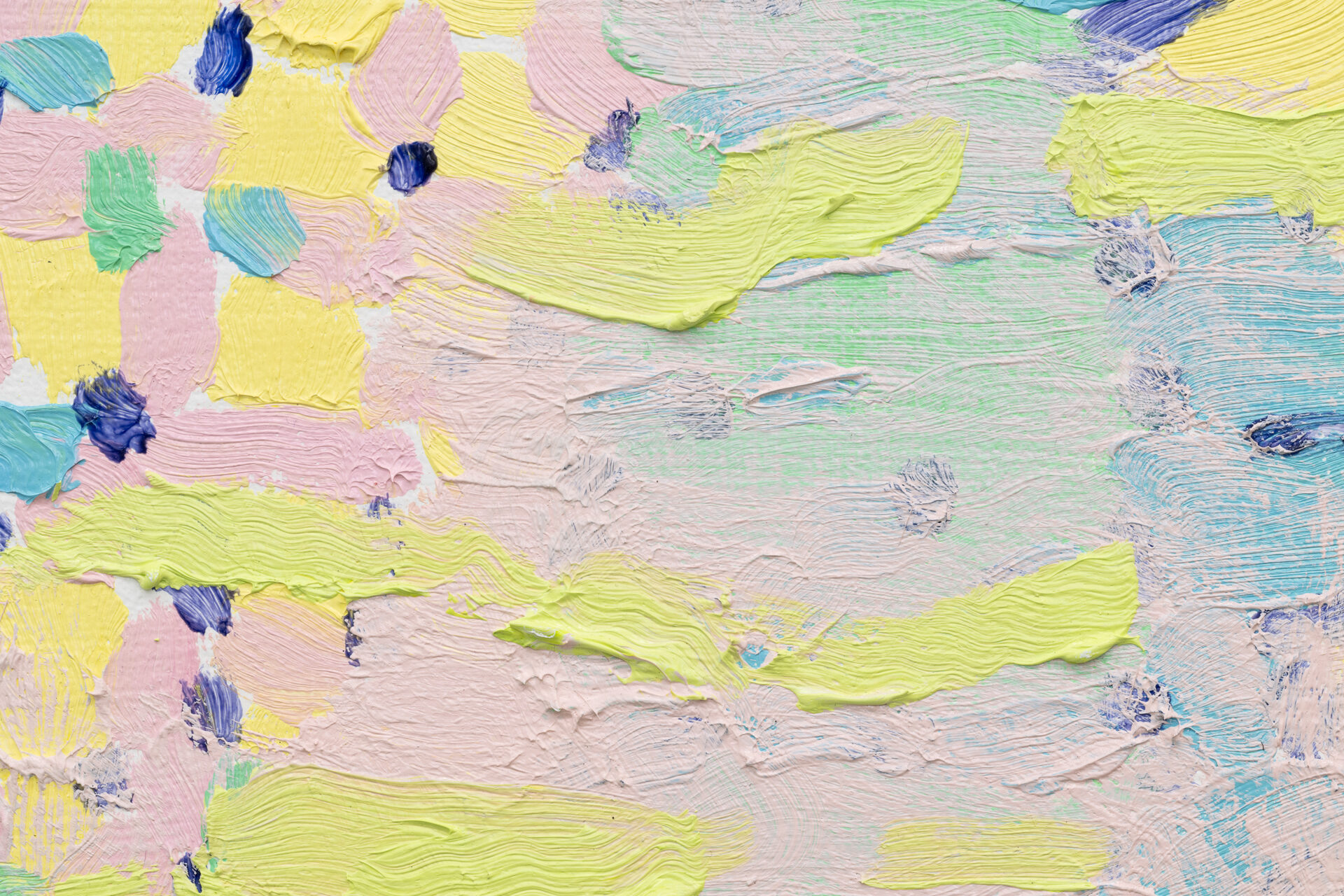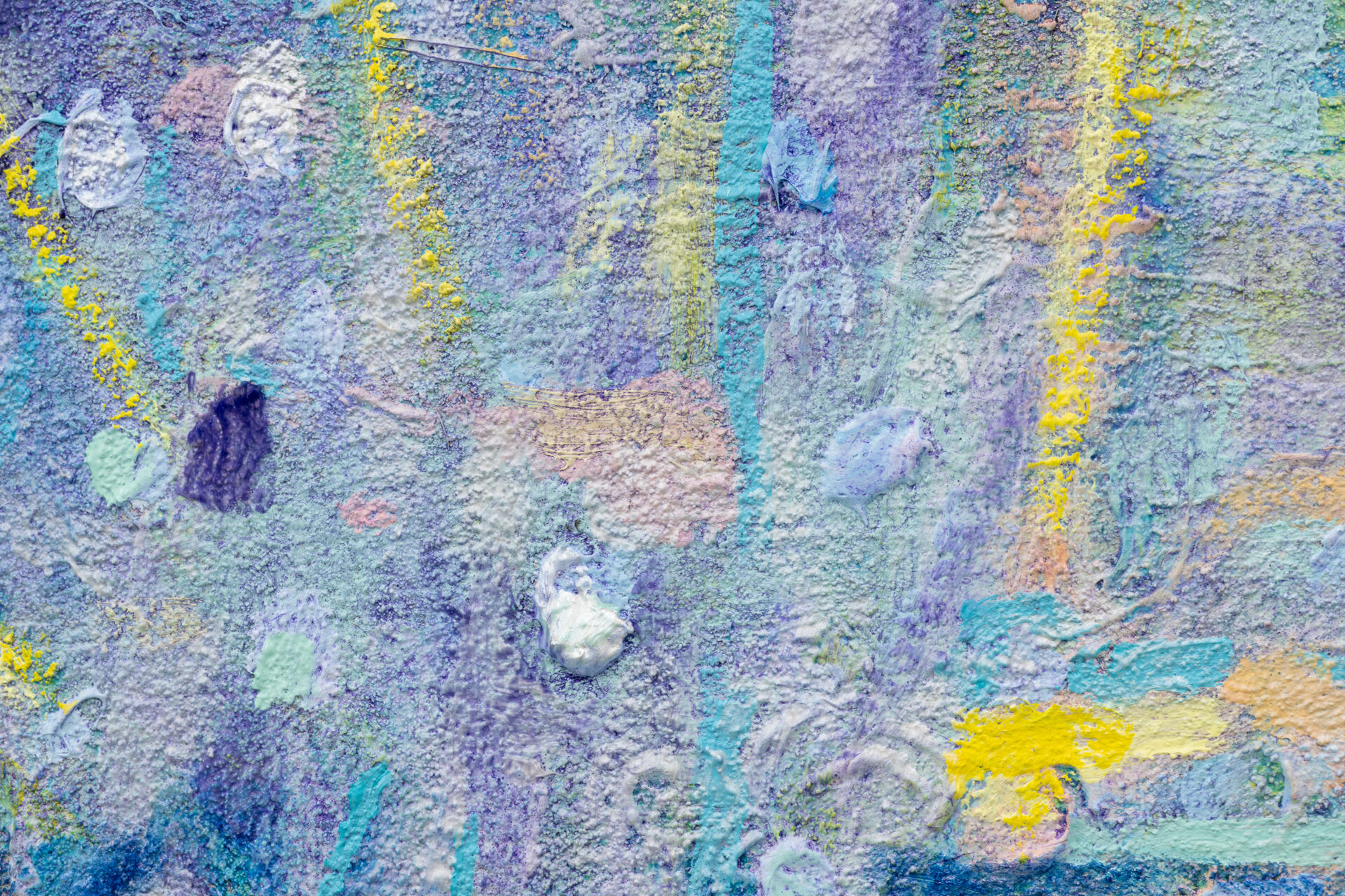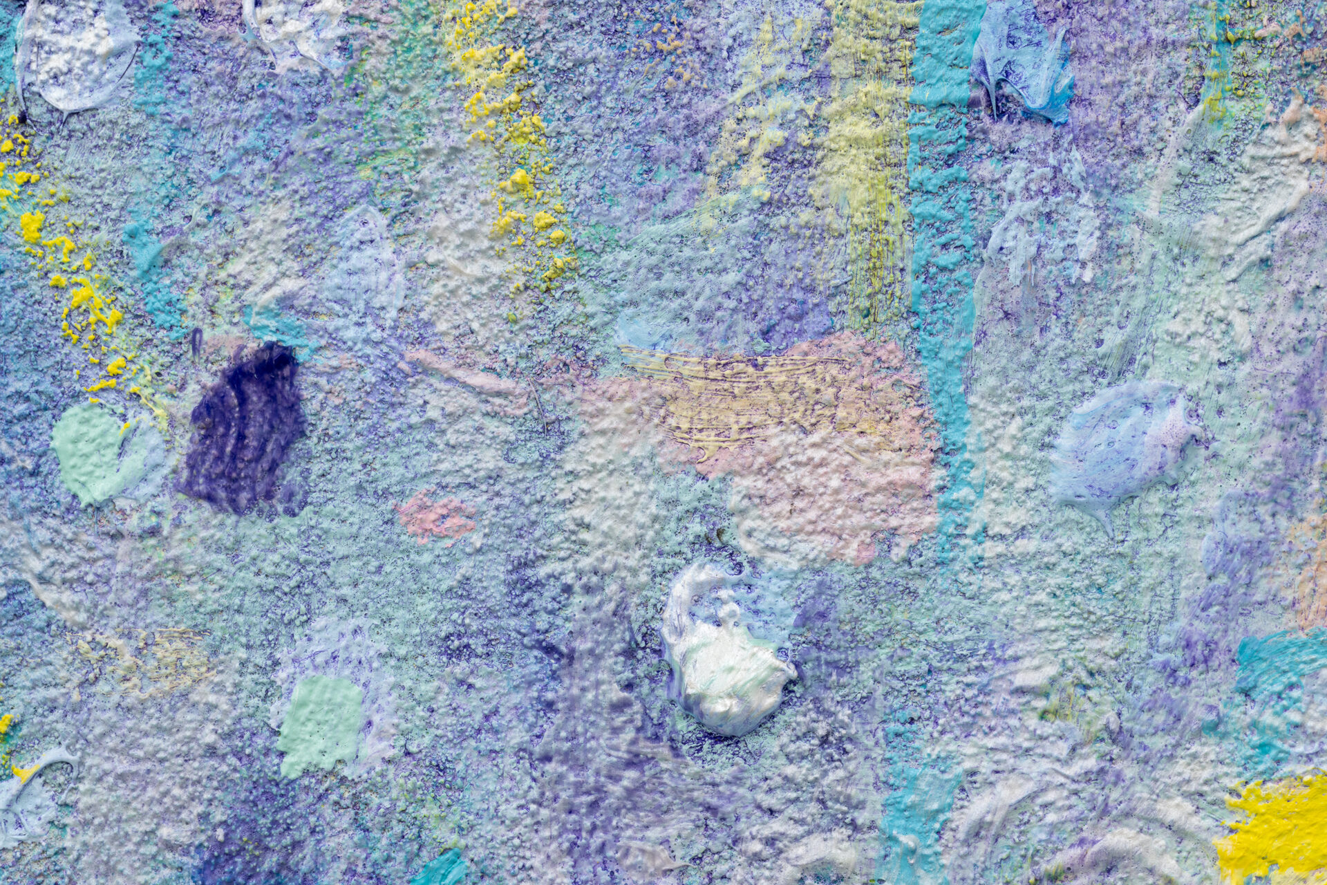 Bringing together works in acrylic, oil and mixed-media, the variety of techniques demonstrate an ongoing inquiry into the juncture of the sensual, formal, and environmental. Multiple works incorporate sand and other materials, in the quest for a vibrant surface. The use of internal subdivision and abutting passages refracts multiple places into the frame of each work while the palette, predominantly pastel with sections of deep blue and violet, conjures the uncertainty of dusk, when the world beckons through the window. Throughout Wind-Eye, wind-swept gestures caress and flow like garlands or fingers.