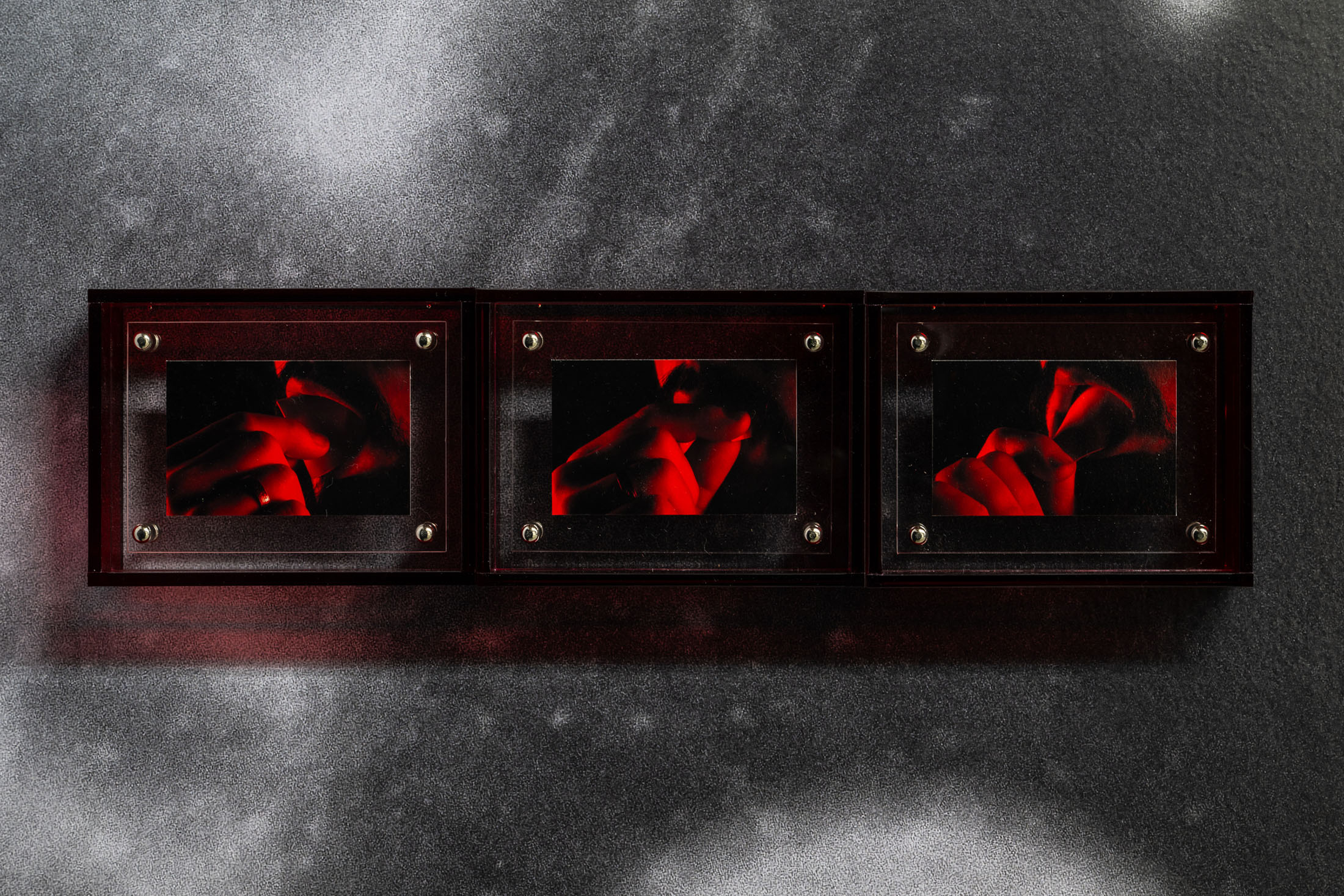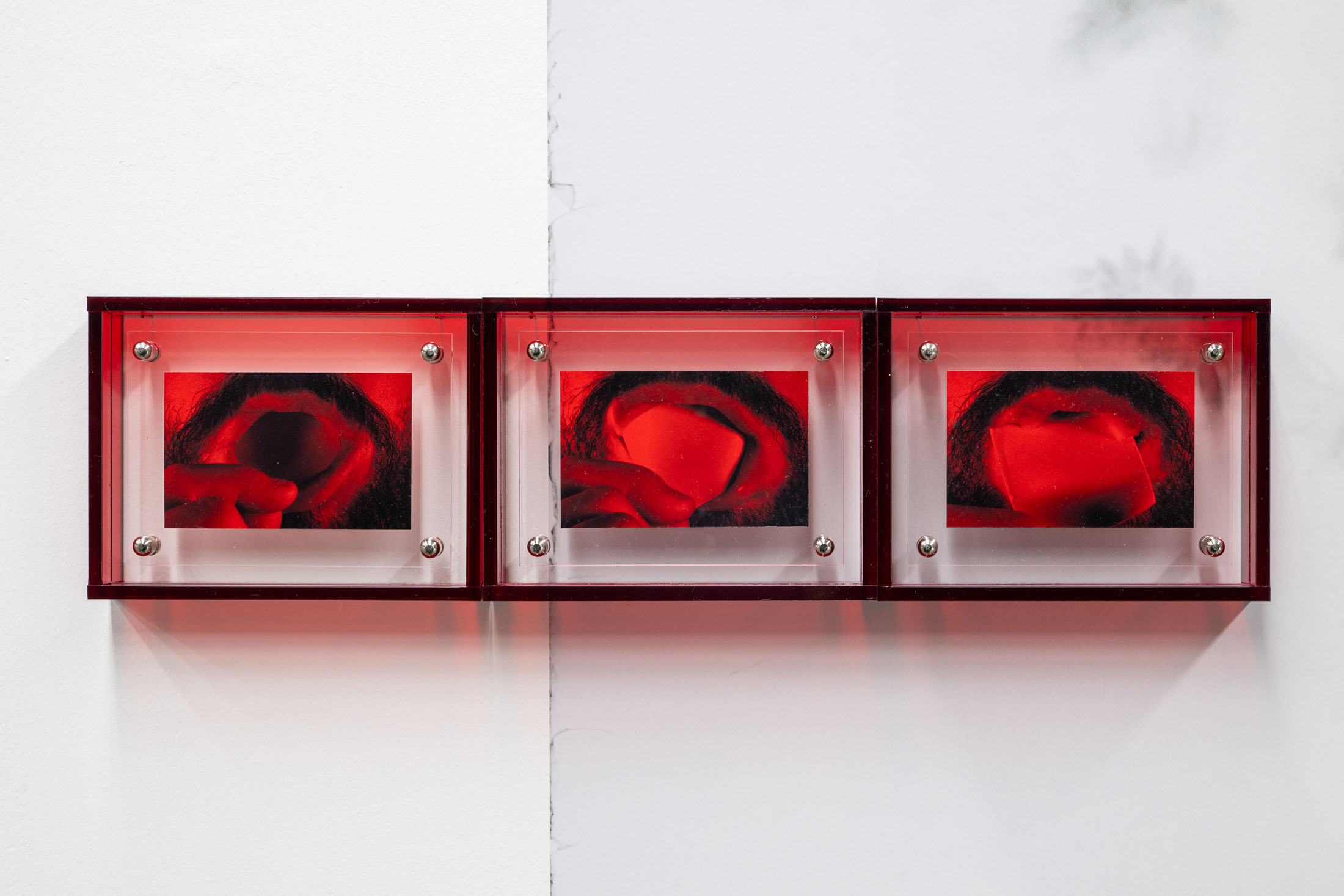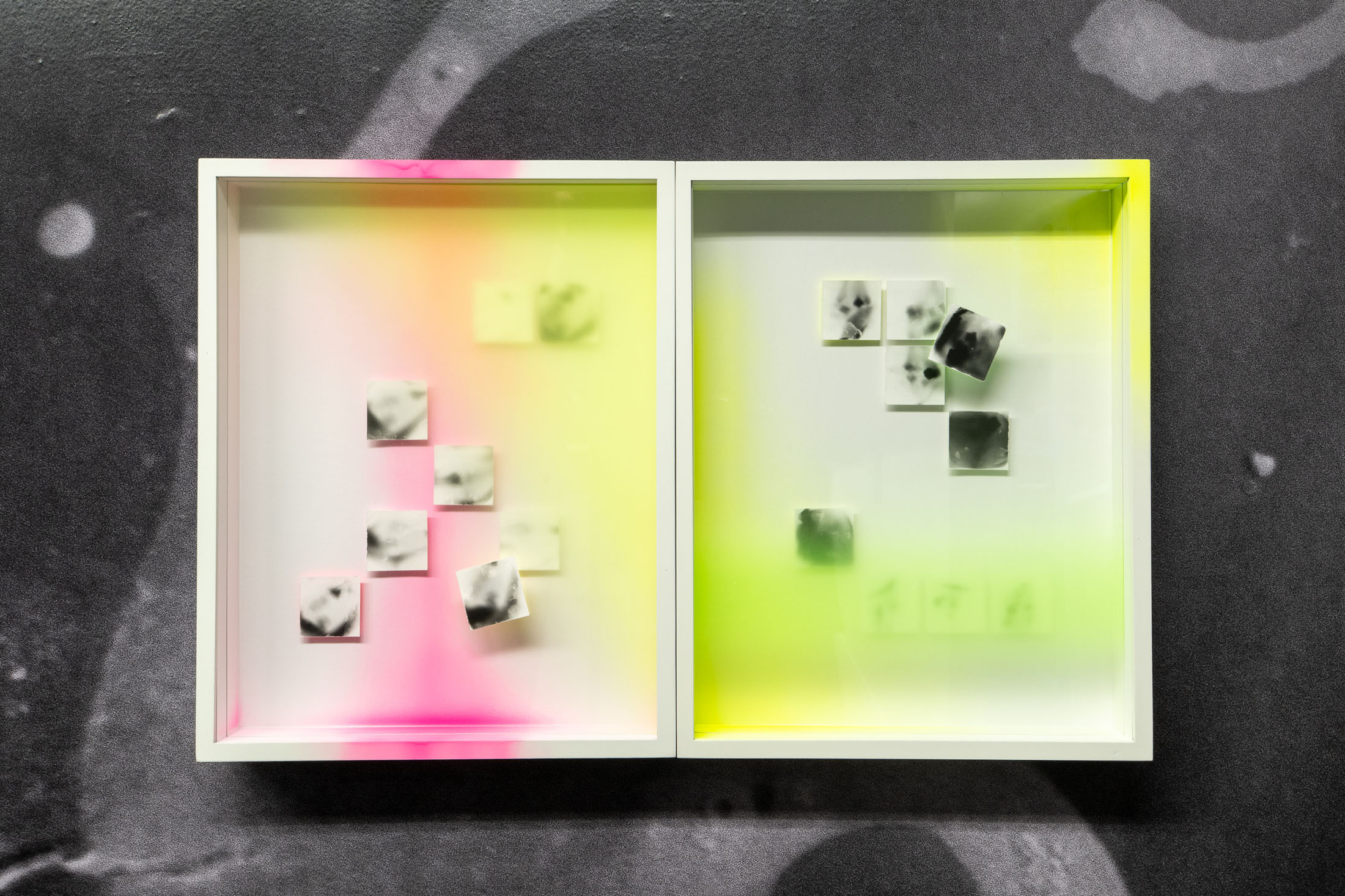 Utilizing their lips, tongue, airways and fluids, Stasieczek holds the referent, that which is depicted, literally in their skull—legible, once developed, mostly as abstraction. The contents of their mouth contaminate the chemistry of the black & white process, pushing against the prescribed becoming of silver halides into metallic silver, rehashing analog photography as a form of alchemy. These operations probe the aesthetic threshold between the interior and exterior of the body as a minor camera obscura which relays otherwise fleeting images that, incessantly, the mouth produces.
