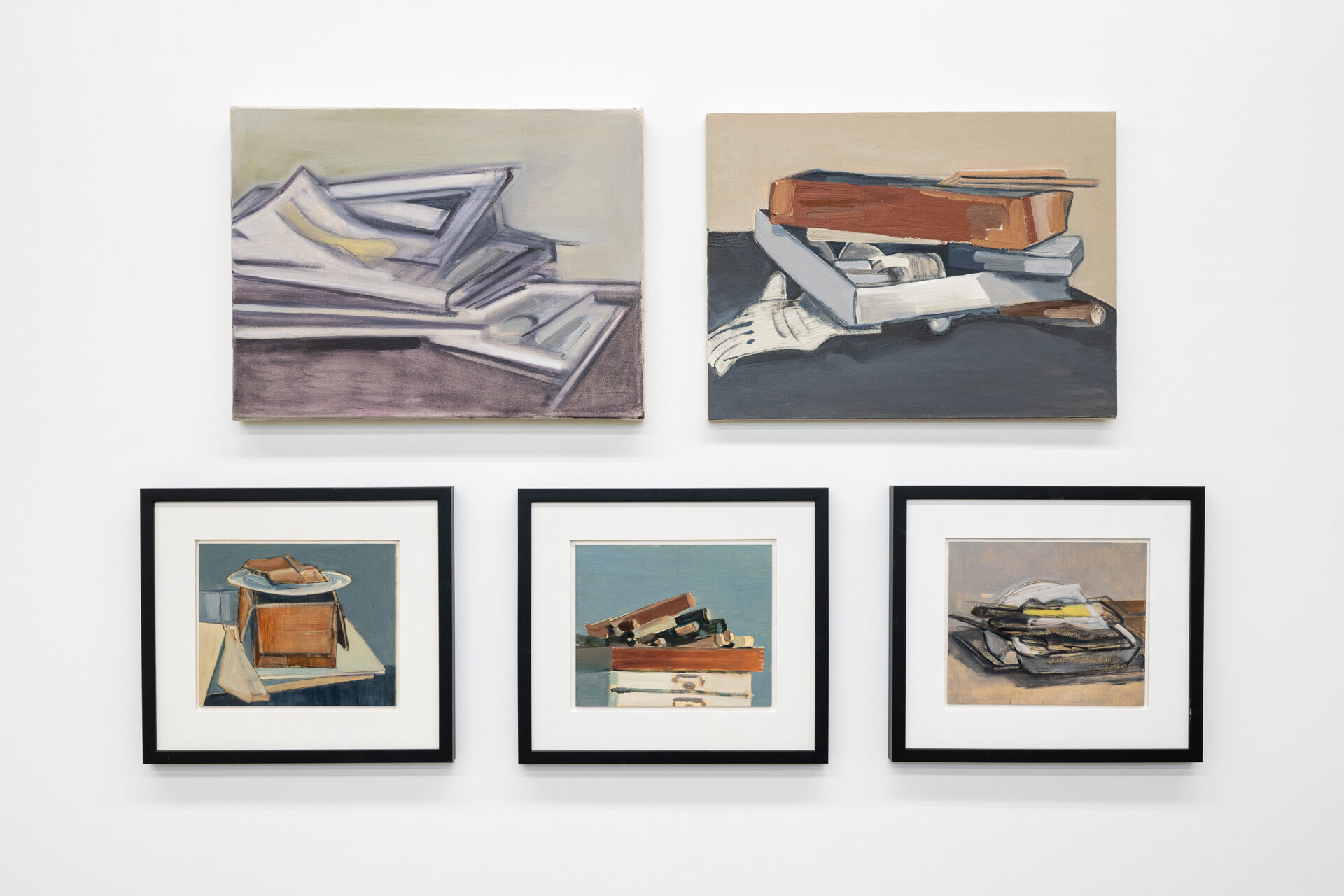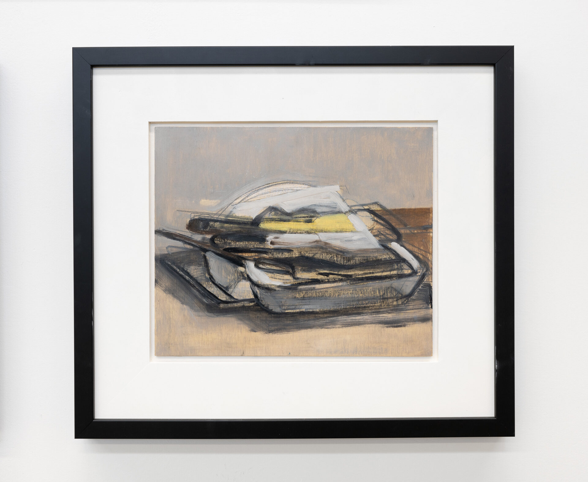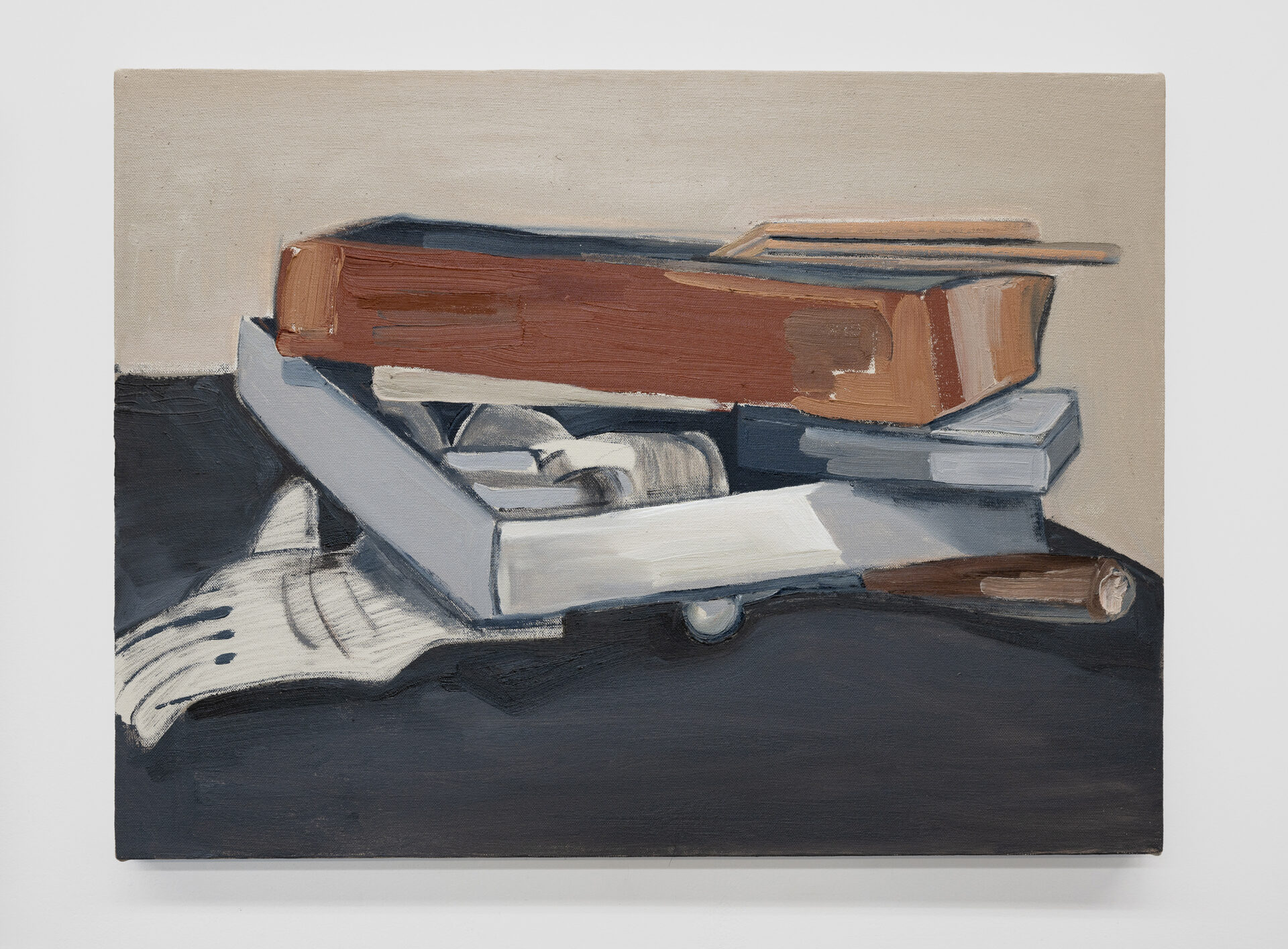 In painting and drawing, I have used the still life genre to relieve common objects of their purpose, to feature them as characters as if in a series of tableaus. The paintings in this exhibition focus on Herald Nix’s studio, where collections appear just as the artist left them, gathered in new stacks each day. Whether carefully organized or haphazardly stacked, these objects seem to write humorous little stories throughout the home and studio. Like a midden, I see those arrangements as a transitory record, the detritus of daily life that I fix in new form where the objects merge, shift roles, and meaning.
