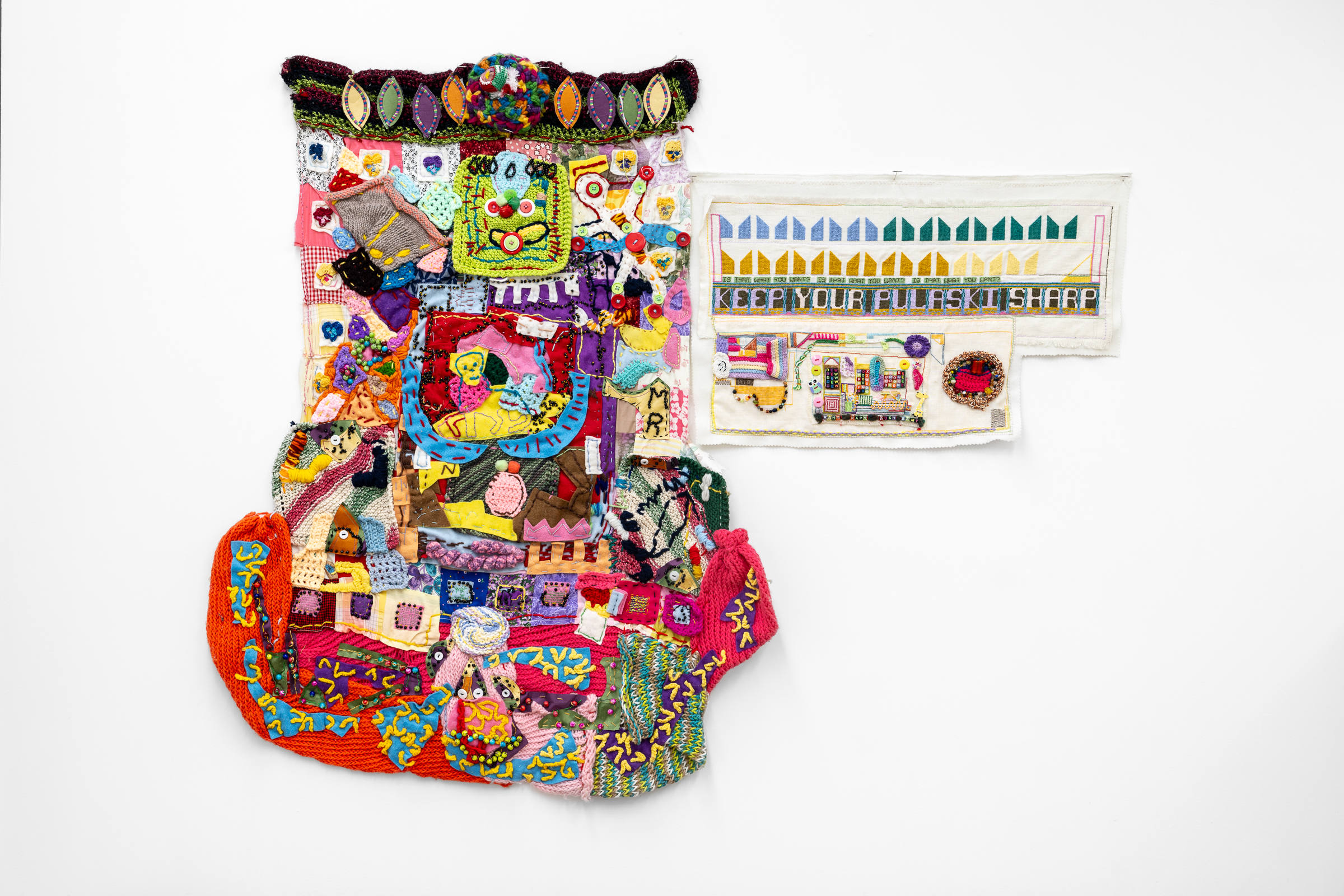 This pair of exhibitions casts a spotlight on the extraordinary studio practice of Edmonton-based artist RICHARD BOULET. Boulet’s visually arresting fine craft textile works feature a characteristic mix of figurative and abstract elements with an emphasis on concrete poetry.