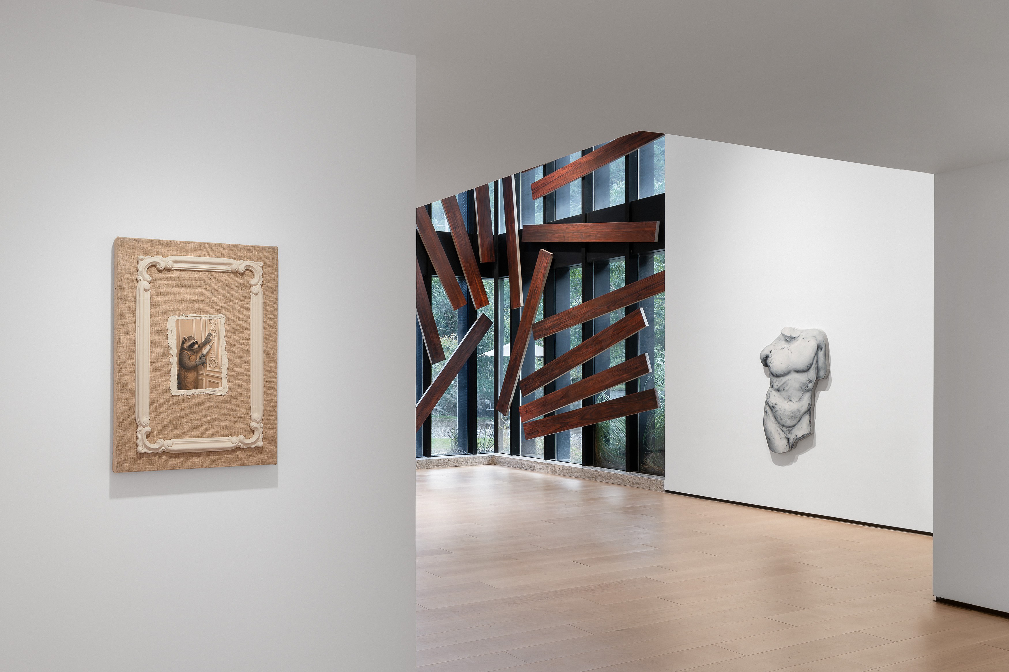 Both artists approach surface as a site where meaning is made, or at least made visible, though never fully trusted. Marius Steiger’s work begins with obsessive craft. His shaped canvases mimic the forms they depict: wooden planks, furniture, cars. But it’s not just visual realism that’s at stake, it’s physical embodiment. The…