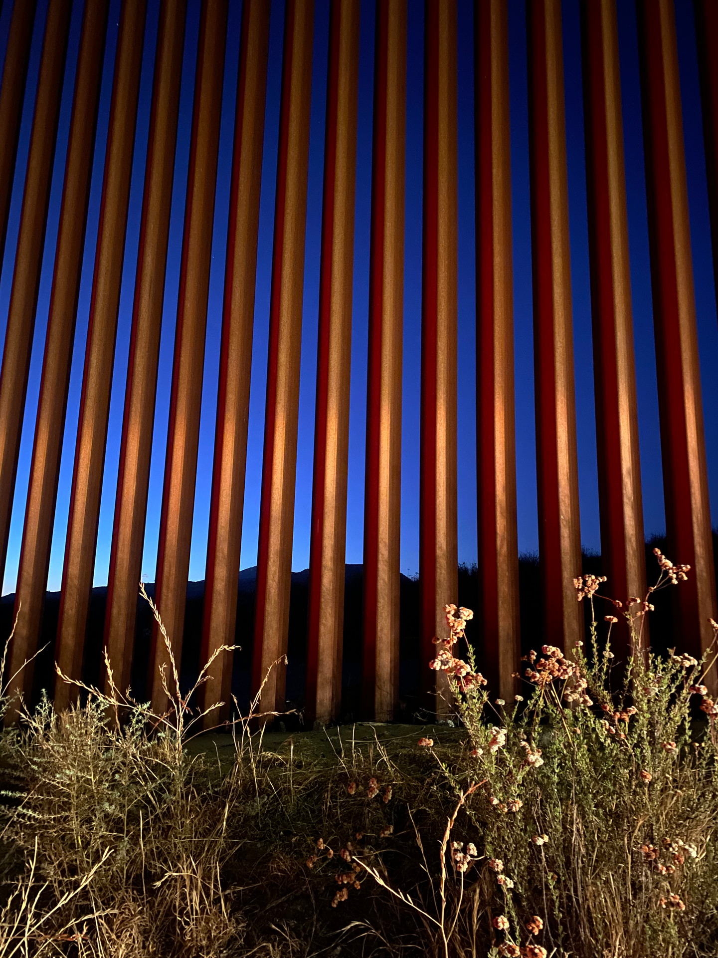 Sunset at the border wall in Tecate, Baja California, August 2025.