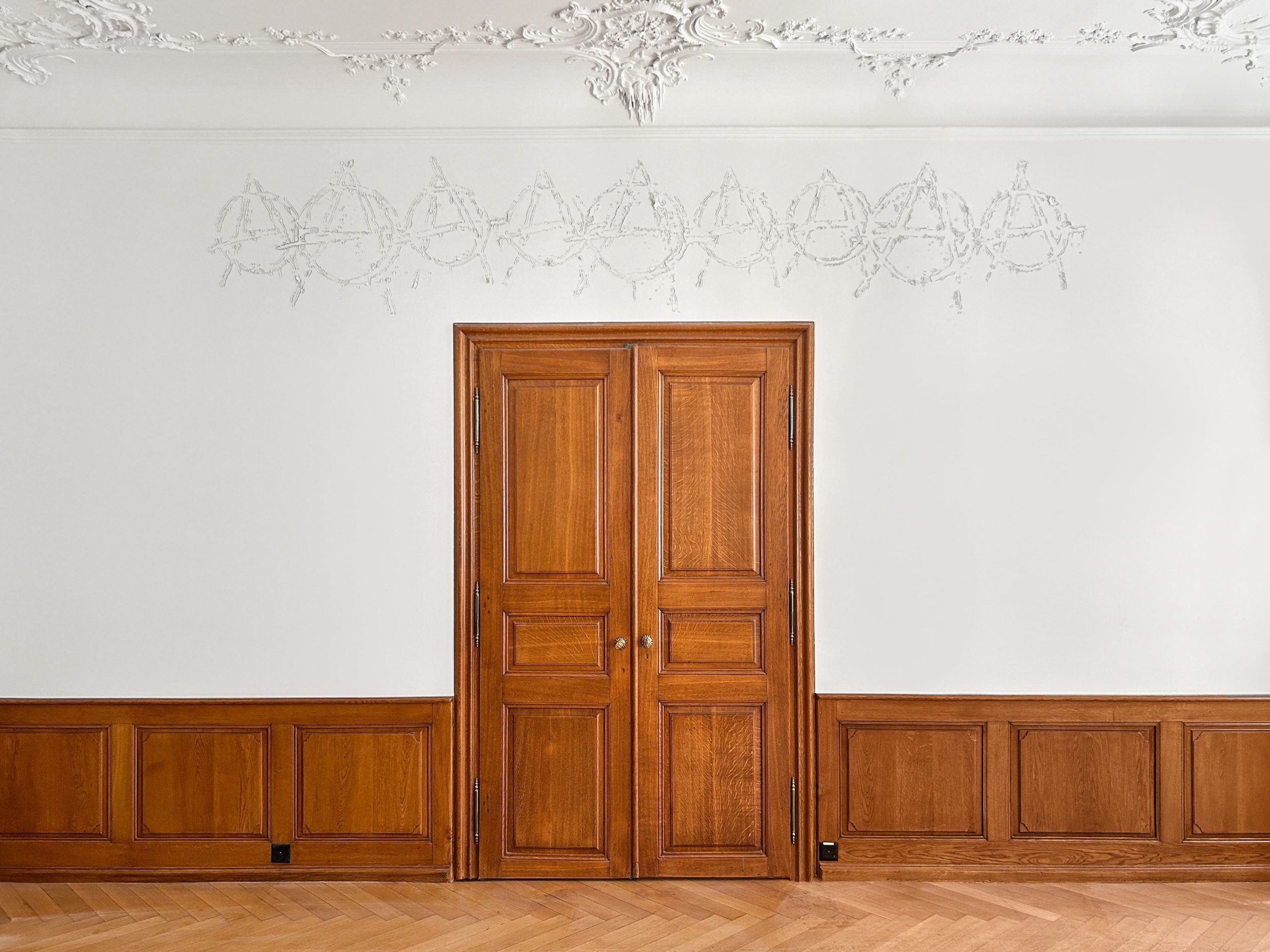Eric Meier, Access All Areas (AAAAAAAAA) (2024), in situ wall engraving at Basel Social Club, Basel, Switzerland