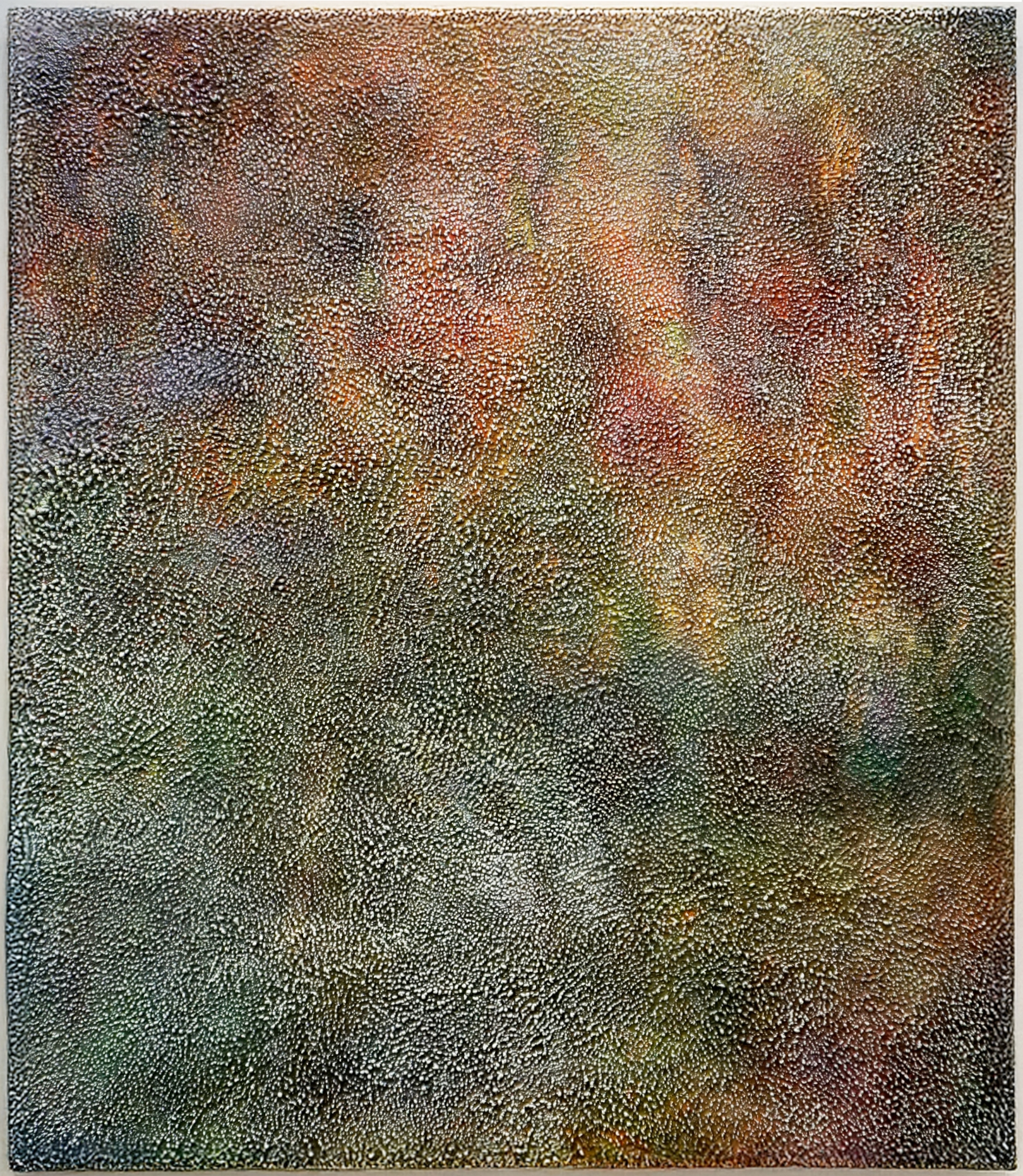 His works operate as states: surface logic, night smoke, pollen drift, dust sequence. Each piece follows a chain of transformations rather than performing expression.