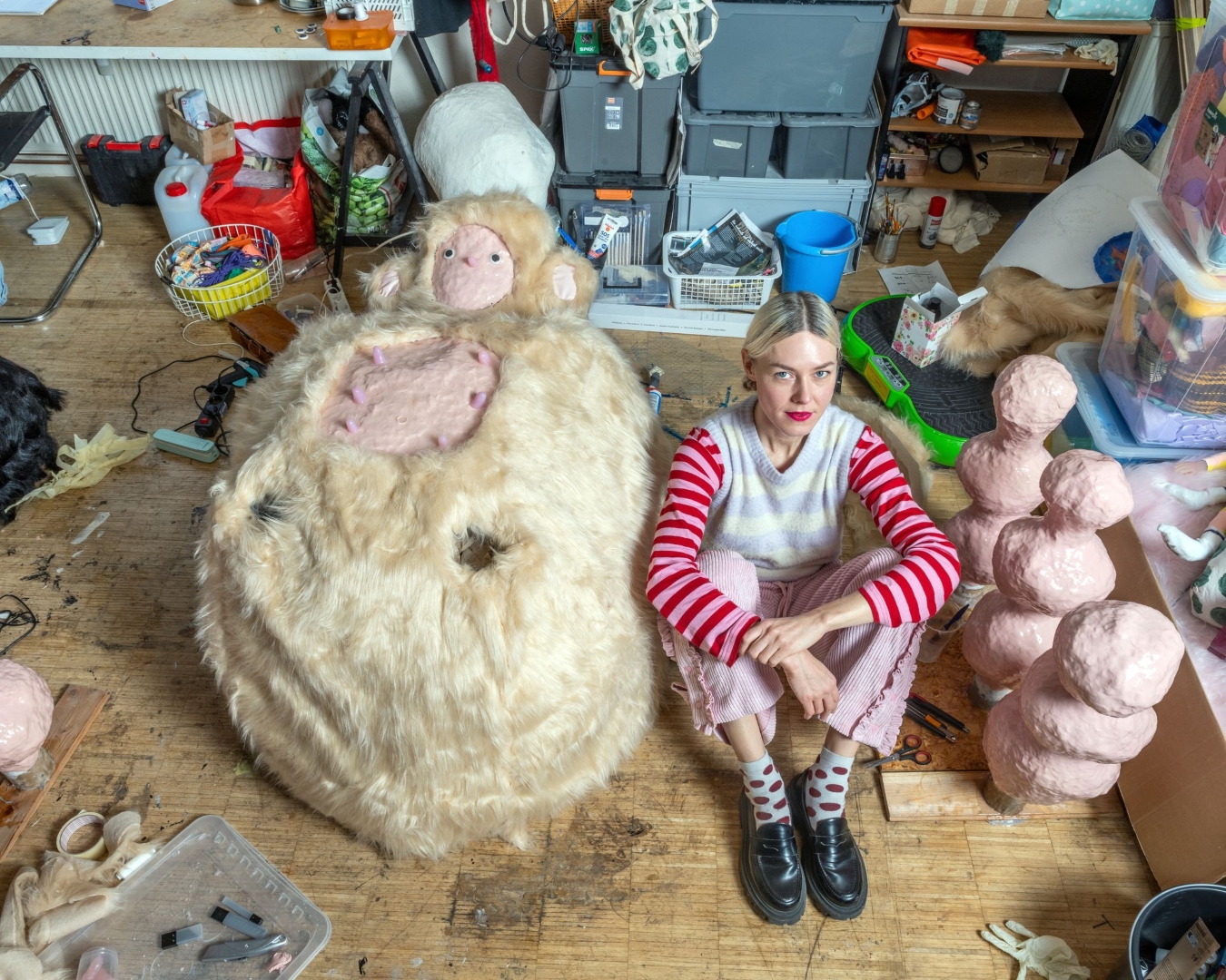Theresa Rothe’s artistic practice lies at the crossroads of sculpture, performance, and the surreal. The German artist (who lives and works in Leipzig) fabricates whimsical yet disquieting creatures that mix human and animal qualities. Through these imaginative forms, Rothe investigates themes of the unconscious, personal memory, and the thin boundary between reality and fantasy. Her approach is precise and introspective – each piece is a material dialogue about emotion and embodiment in the contemporary world.