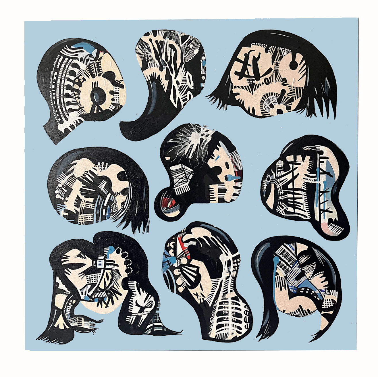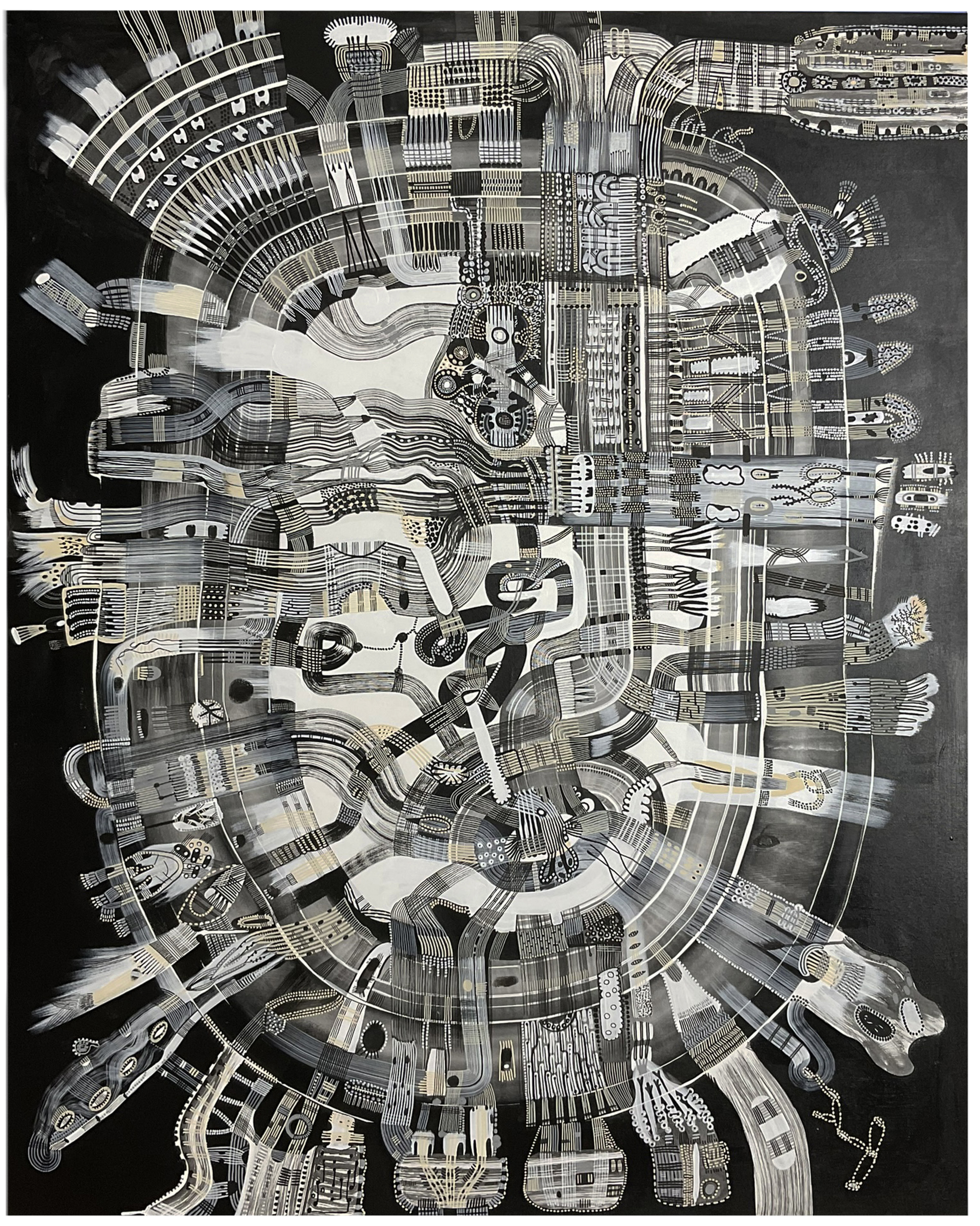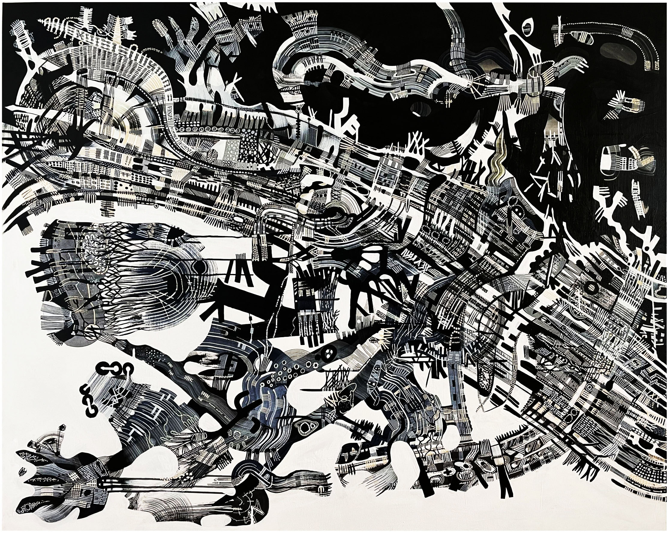Katherine began painting in 2020, following a successful career in illustration and design. The shift came during the COVID-19 pandemic, a period that prompted her to explore more instinctive and tactile forms of expression. Her paintings often oscillate between chaos and control, drawing on her background in printmaking and her deep engagement with visual storytelling.